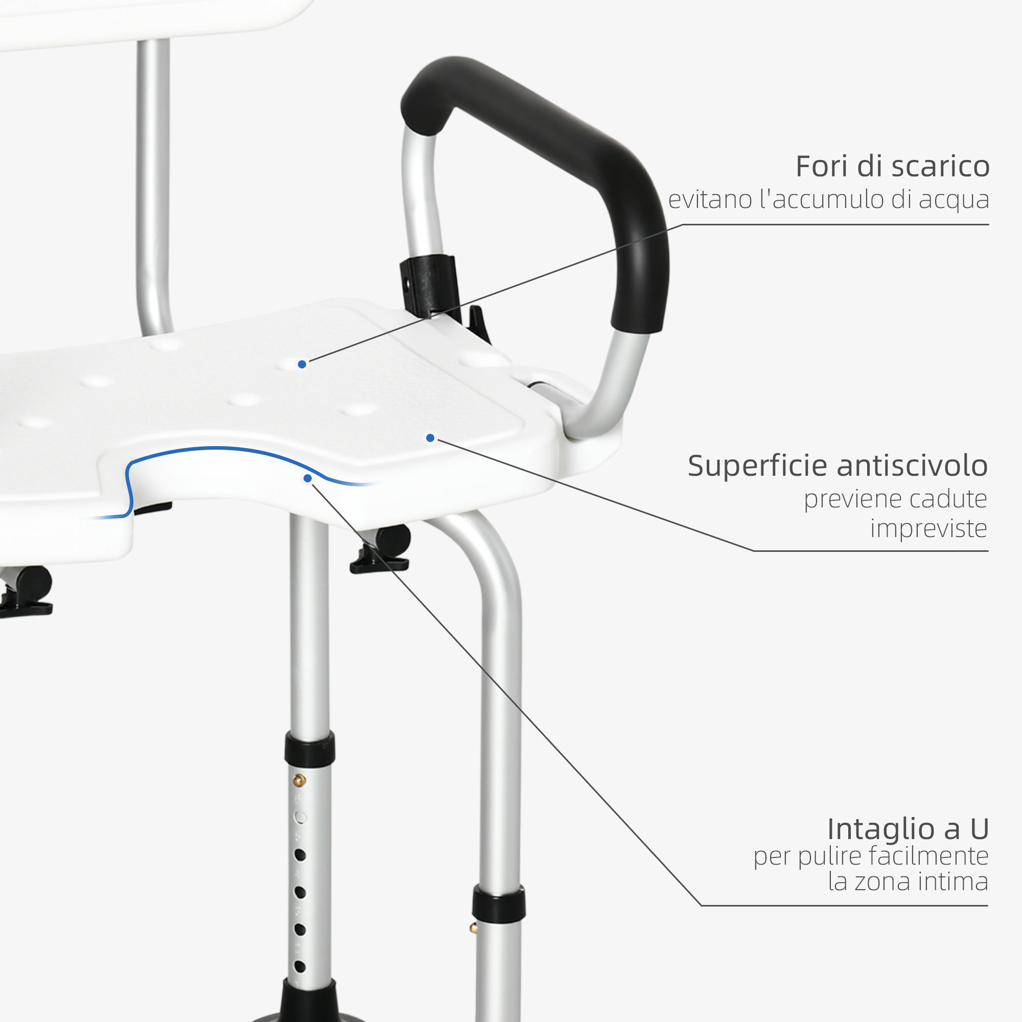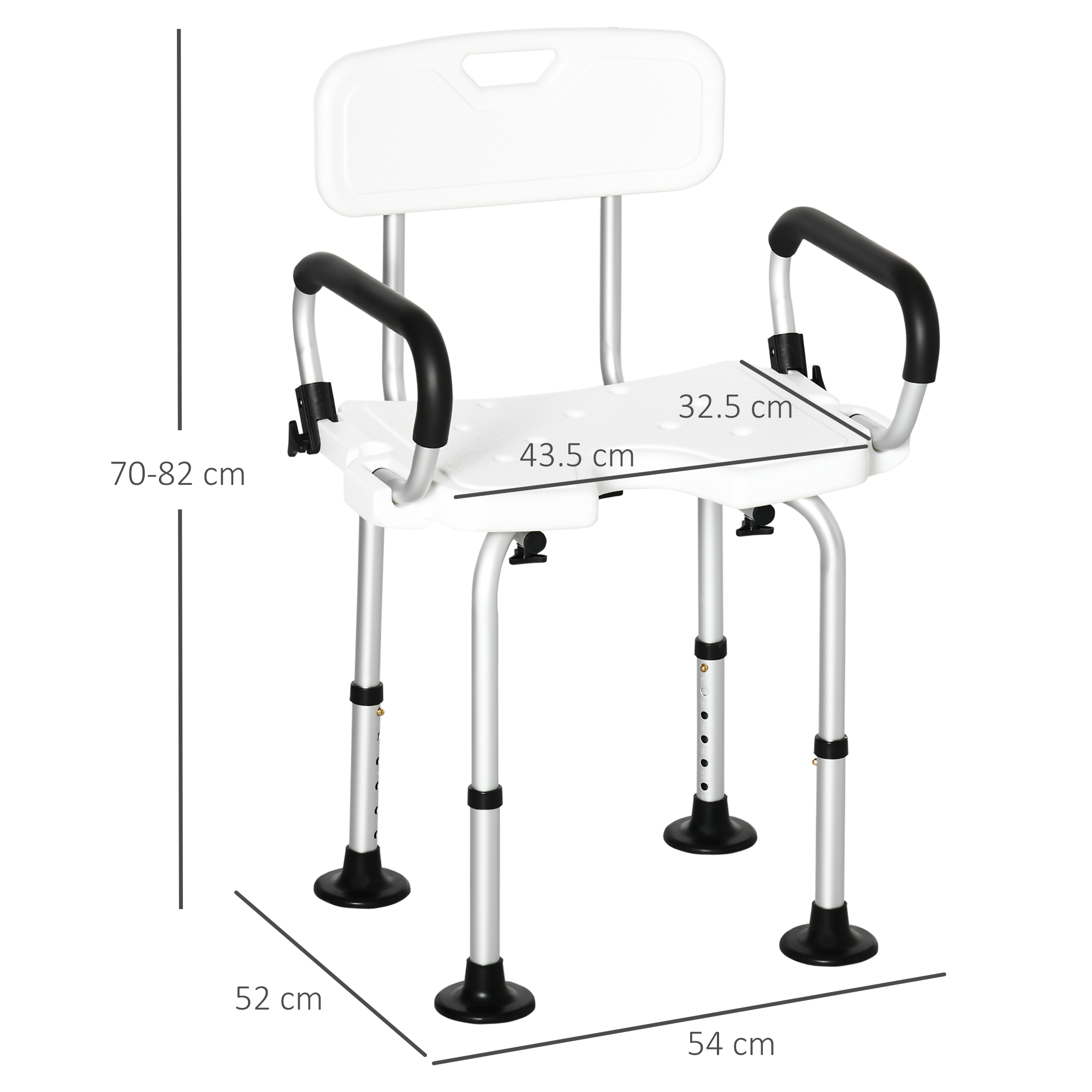 Καρέκλα ντους HOMCOM για ηλικιωμένους, ανάπηρους και έγκυες γυναίκες με επένδυση σχήματος U, 54x52x70-82 cm, λευκό 713-117V00WT