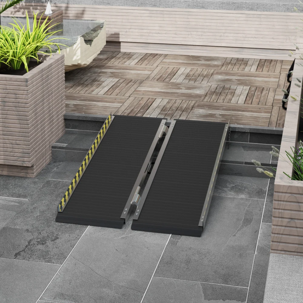 HOMCOM Πτυσσόμενη ράμπα αναπηρικού αμαξιδίου από αλουμίνιο με εκτροπείς και αυτοκόλλητα, 122×73,6×5,1 cm, Μαύρο 713-142V01BK