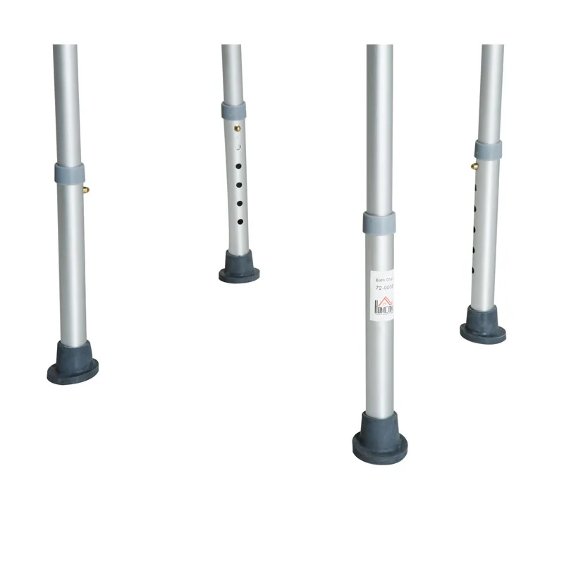 Η καρέκλα μπάνιου, από την εταιρία HOMCOM, είναι κατάλληλη για ηλικιωμένους και άτομα με περιορισμένη κινητικότητα. Διαθέτει πλαίσιο αλουμινίου με μέγιστο βάρος 136 Kg, υψηλής πυκνότητας αντιβακτηριδιακό κάθισμα πολυαιθυλενίου με οπές αποστράγγισης του νερού. Τα πόδια της καρέκλας ρυθμίζονται σε ύψος 8 επιπέδων, για να προσαρμόζεται στις εκάστοτε ανάγκες του χρήστη, ενώ τα αντιολισθητικά μαξιλαράκια εξασφαλίζουν τη σταθερότητα σε υγρό έδαφος.