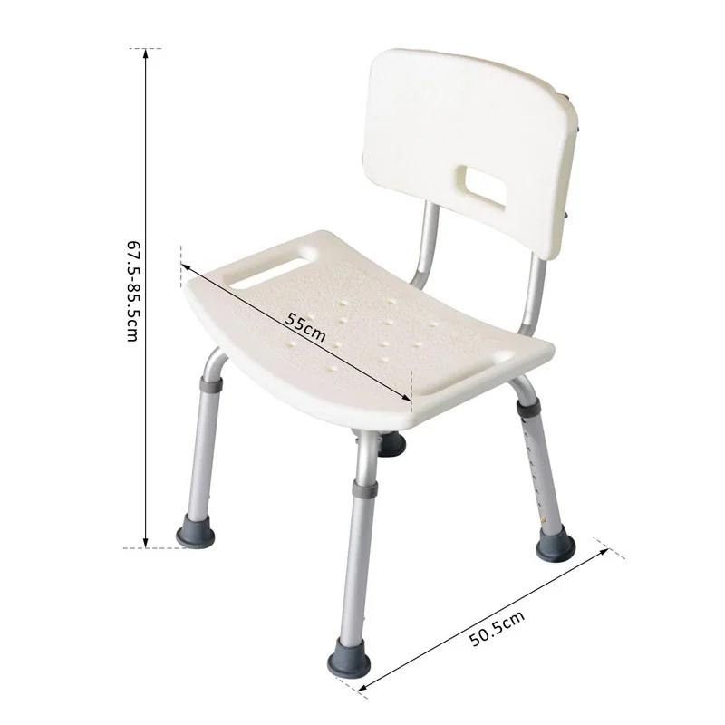 Αντιολισθητική Καρέκλα Μπάνιου με Ρυθμιζόμενο Ύψος 46.5 x 50.6 x 67.5 – 85.5 cm HOMCOM 72-0008