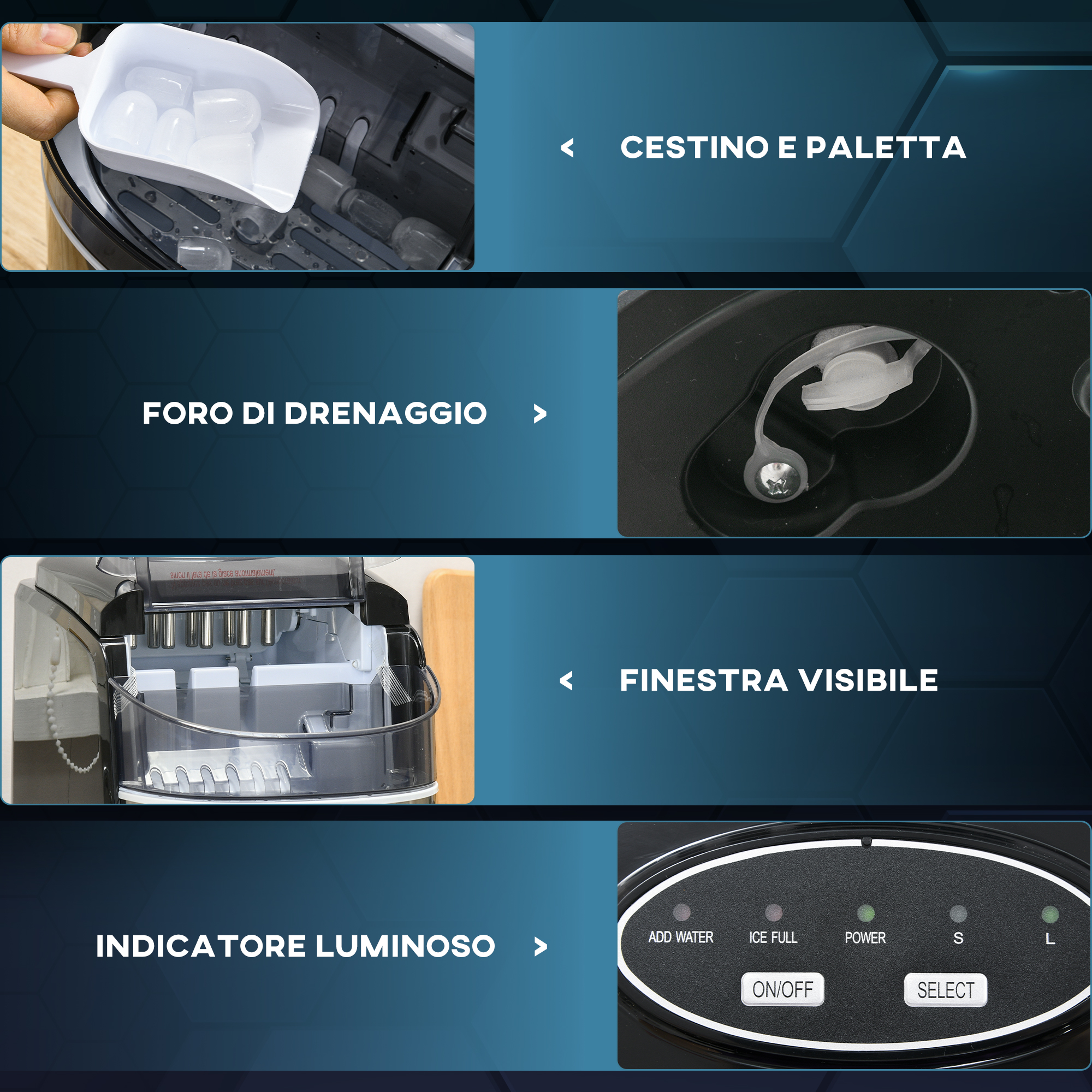 Αυτοκαθαριζόμενη παγομηχανή με 9 κύβους σε 6-12 λεπτά, από PP και ανοξείδωτο χάλυβα, 24,2×35,3×33 cm, Μαύρο 800-183V90BK