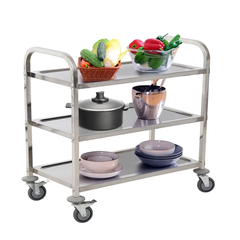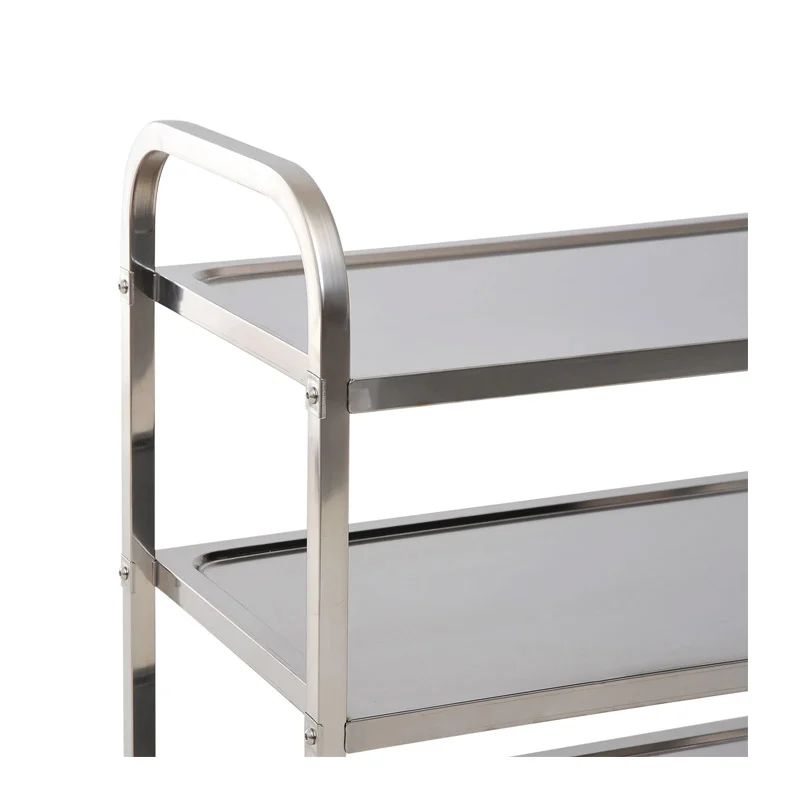 Το τρόλεϊ κουζίνας, από την εταιρία HOMCOM, είναι κατασκευασμένο από ανοξείδωτο ατσάλι βαρέως τύπου 430, για μέγιστη αντοχή. Διαθέτει 3 ευρύχωρα ράφια, 4 περιστρεφόμενους τροχούς με 2 φρένα και 2 λαβές για εύκολη κίνηση.
