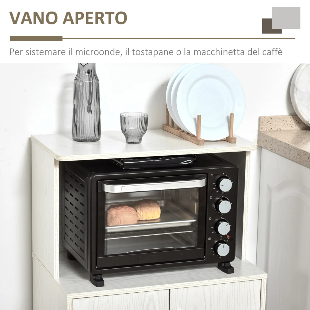 HOMCOM Ντουλάπι Κουζίνας με Ράφι μικροκυμάτων σε μοριοσανίδες, 60,4×40,3x97cm Λευκό 801-100WT