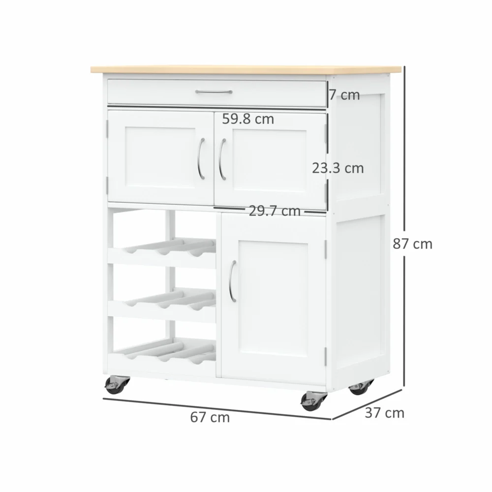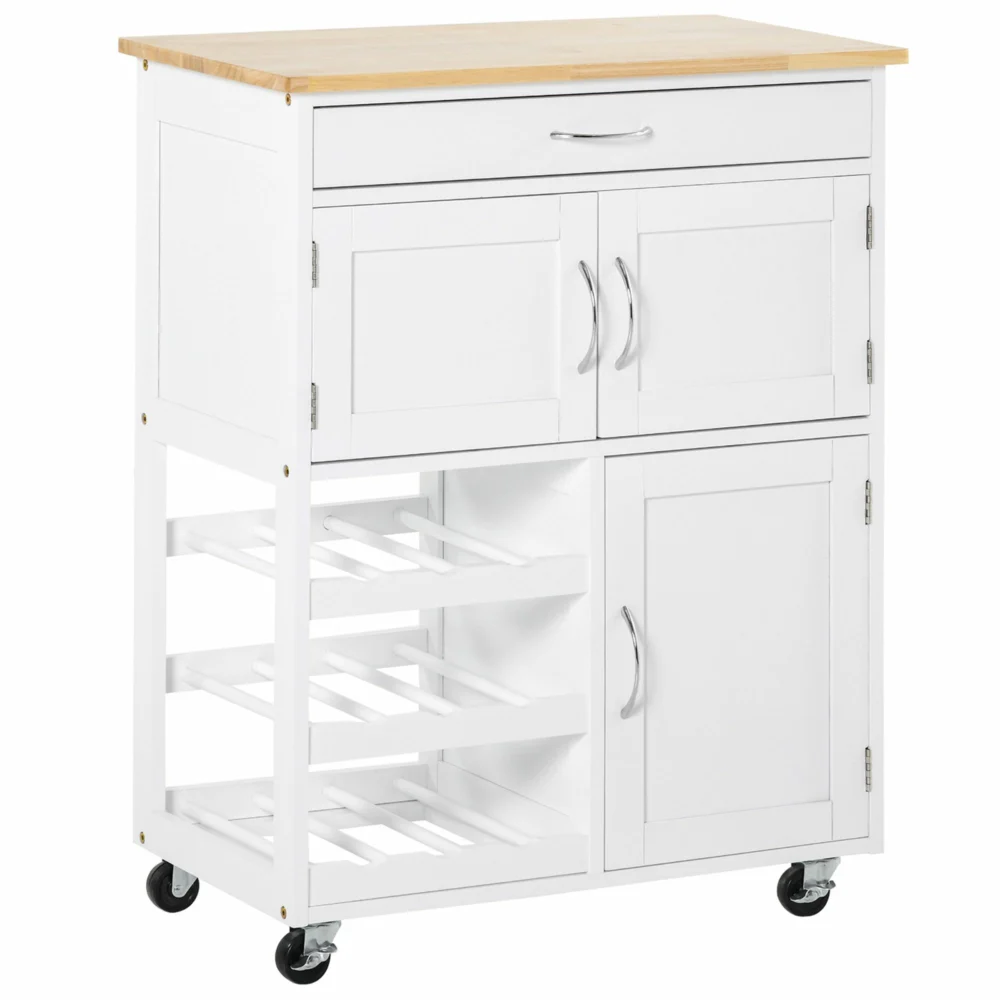 HOMCOM White Wood Kitchen Cart food with Bottle Rack 1 συρτάρι και 3 πόρτες, 67x37x87cm 801-179
