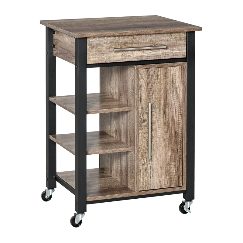 Μεταλλικό Τρόλεϊ Κουζίνας με 1 Ντουλάπι 3 Ράφια και 1 Συρτάρι 60 x 50 x 84.5 cm HOMCOM 801-180
