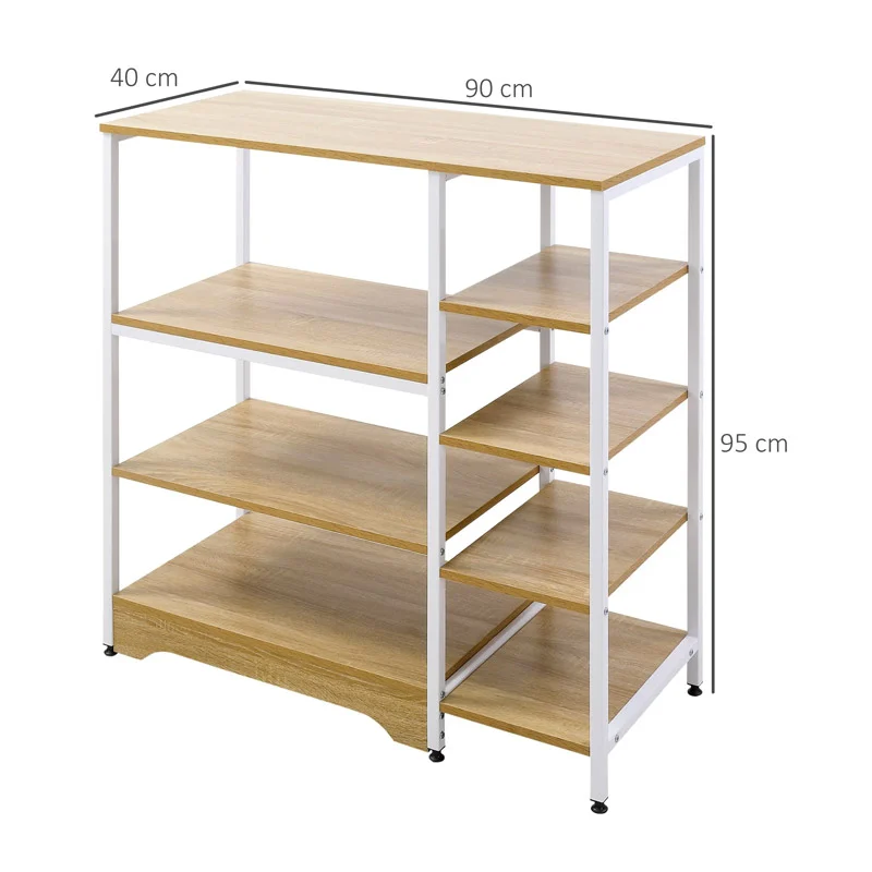Η ραφιέρα, από την εταιρία HOMCOM, έχει μεταλλικό πλαίσιο που εξασφαλίζει σταθερότητα και στιβαρότητα, ενώ τα 7 συμπαγή ράφια από μοριοσανίδες υποστηρίζουν με ασφάλεια όλα τα αντικείμενά σας. Είναι εξοπλισμένο με αντιολισθητικά πόδια για τη διατήρηση της σταθερότητας και την προστασία του δαπέδου. Είναι ένα ευέλικτο έπιπλο πολλαπλών χρήσεων, το οποίο μπορείτε να χρησιμοποιήσετε ως ραφιέρα κουζίνας, βιβλιοθήκη μελέτης ή έπιπλο διαδρόμου.