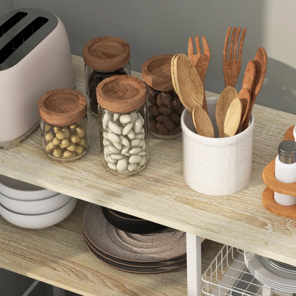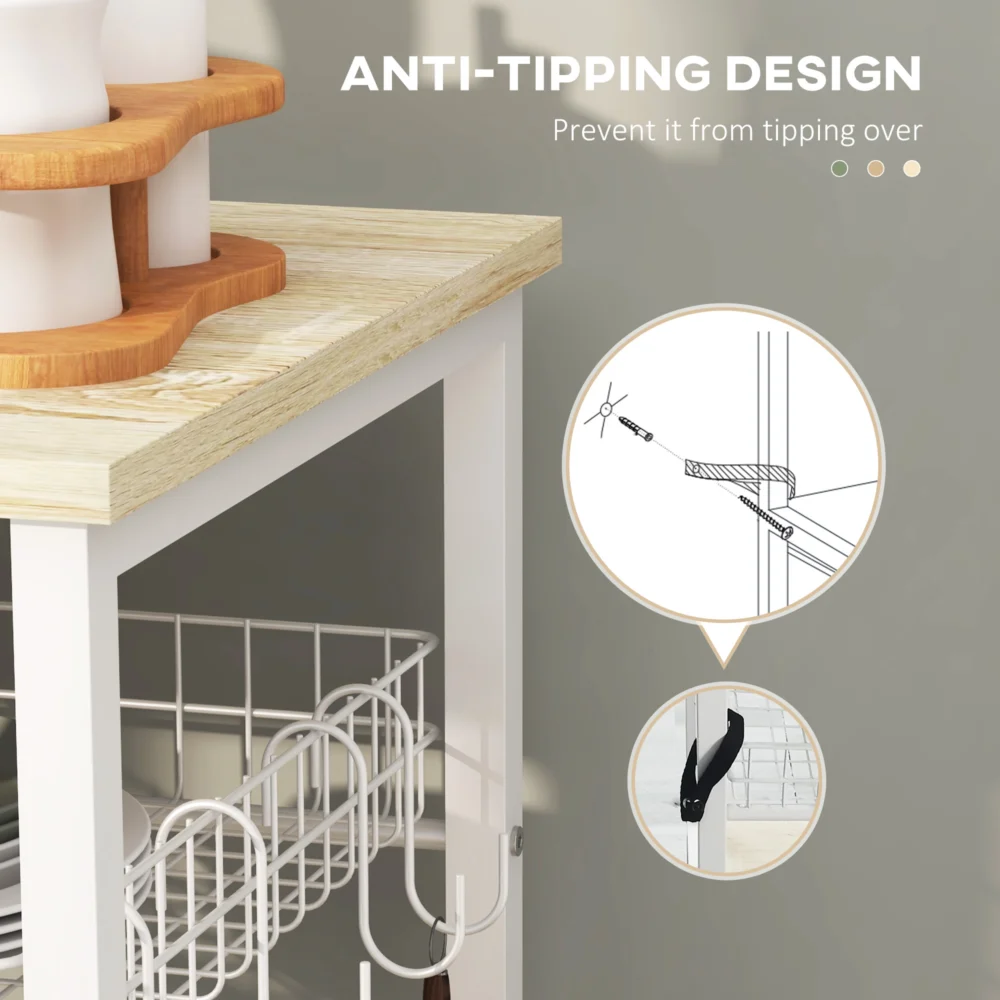 HOMCOM Ντουλάπι Κουζίνας Μοντέρνα με 4 Ράφια με Καλάθι και Γάντζους σε Ξύλο και Ατσάλι, 90x40x84,5cm, Δρυ και Λευκό 801-346V00AK