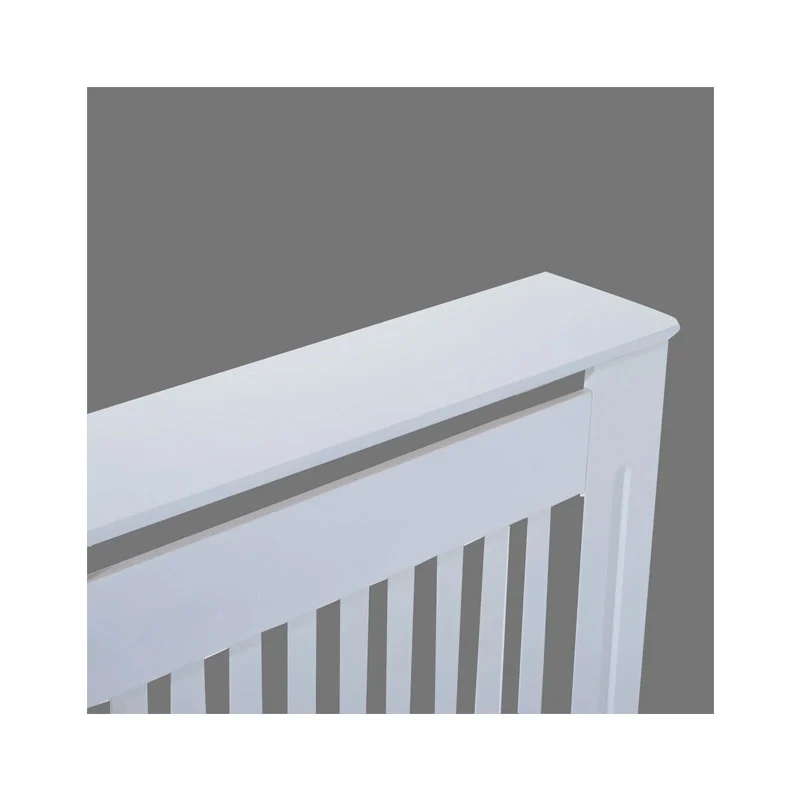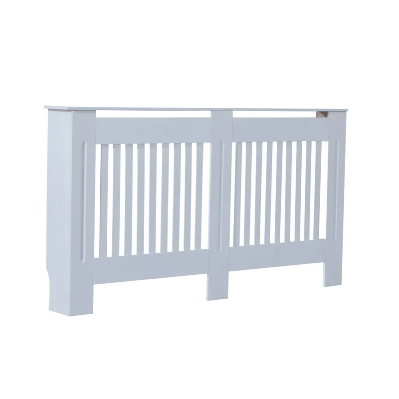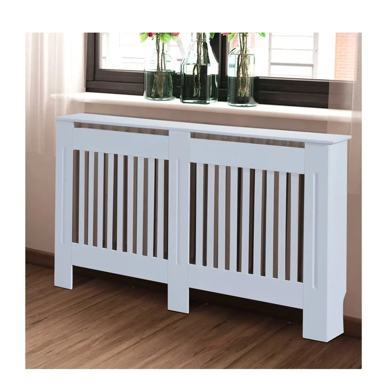 Το κάλυμμα καλοριφέρ, από την εταιρία HOMCOM, είναι κατασκευασμένο από MDF, σε λευκό ουδέτερο χρώμα. Έχει μπροστινό σχεδιασμό ώστε να επιτρέπει τη διάχυση της θερμότητας από το καλοριφέρ στον χώρο, ενώ το πάνω ράφι προσφέρει τη δυνατότητα τοποθέτησης διάφορων διακοσμητικών αντικειμένων.