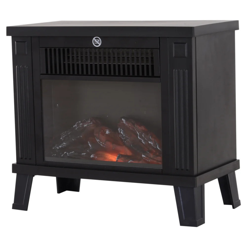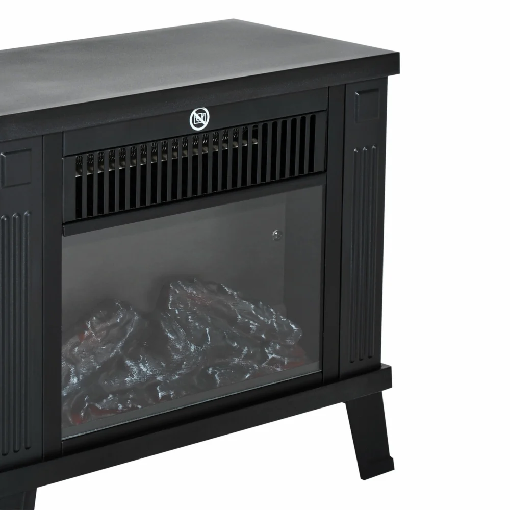 Ηλεκτρικό τζάκι δαπέδου HomCom 600W / 1200W με εφέ φλόγας, Μαύρο, 38,5 x 22 x 30,5 cm 820-065