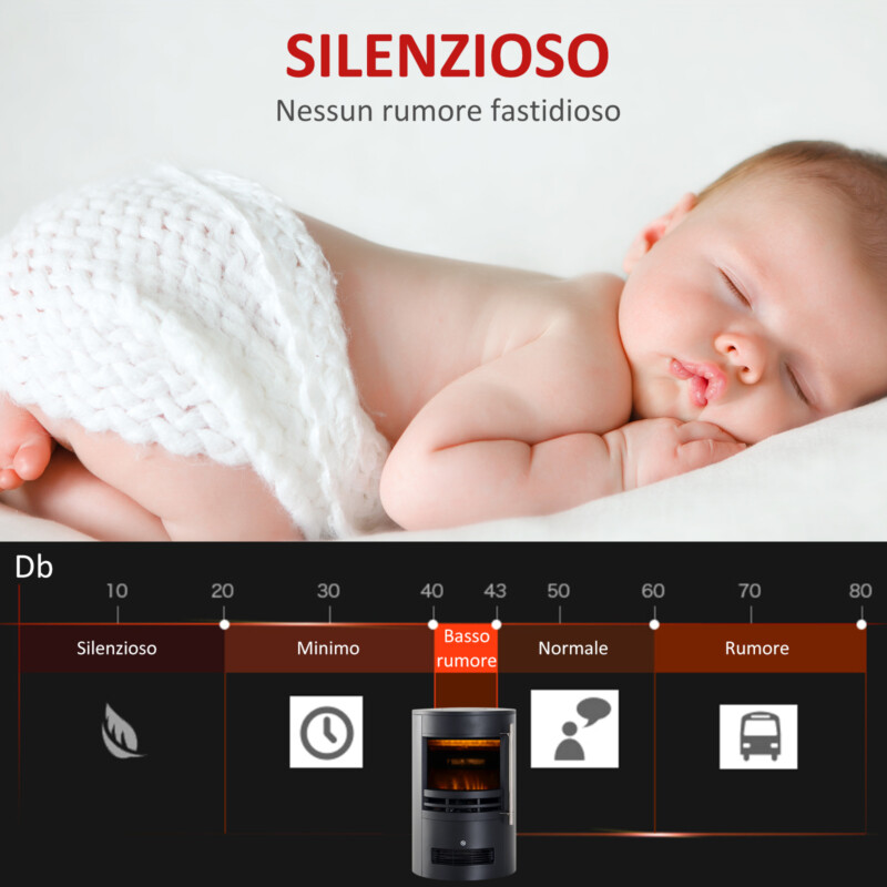 HOMCOM Ηλεκτρικό τζάκι δαπέδου ισχύος 900W / 2000W με εφέ φλόγας 41 41 64,5cm Μαύρο 820-087