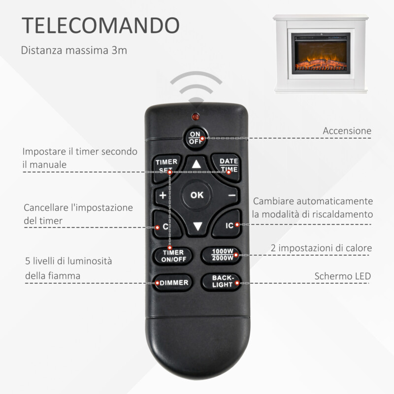 HOMCOM Ηλεκτρικό Τζάκι Ρεαλιστικό Εφέ Φλόγας με Ξύλινο Πλαίσιο – Λευκό 820-195V90