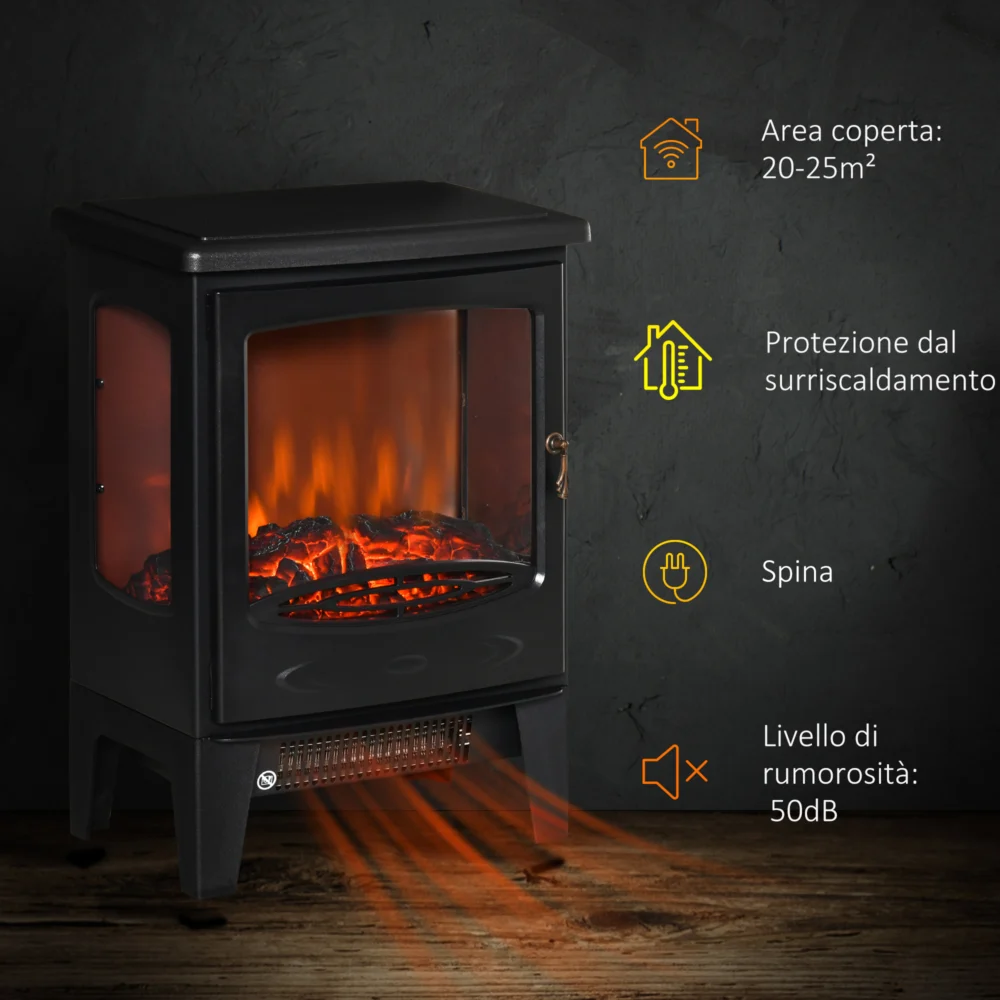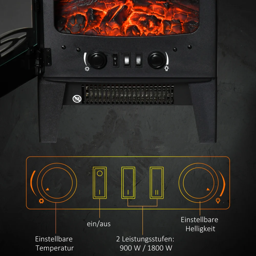 HOMCOM Ηλεκτρικό τζάκι με εφέ φλόγας και 3 ανοιχτές πλευρές ρυθμιζόμενη κάλυψη θερμοκρασίας 20-25m² – Μαύρο 820-222V90BK
