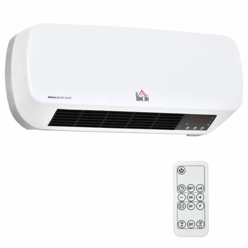 HOMCOM Ηλεκτρικό αερόθερμο τοίχου με τηλεχειριστήριο, ρυθμιζόμενη θερμοκρασία και χρονοδιακόπτη 12 ωρών, Ισχύς 1000W / 2000W 820-254