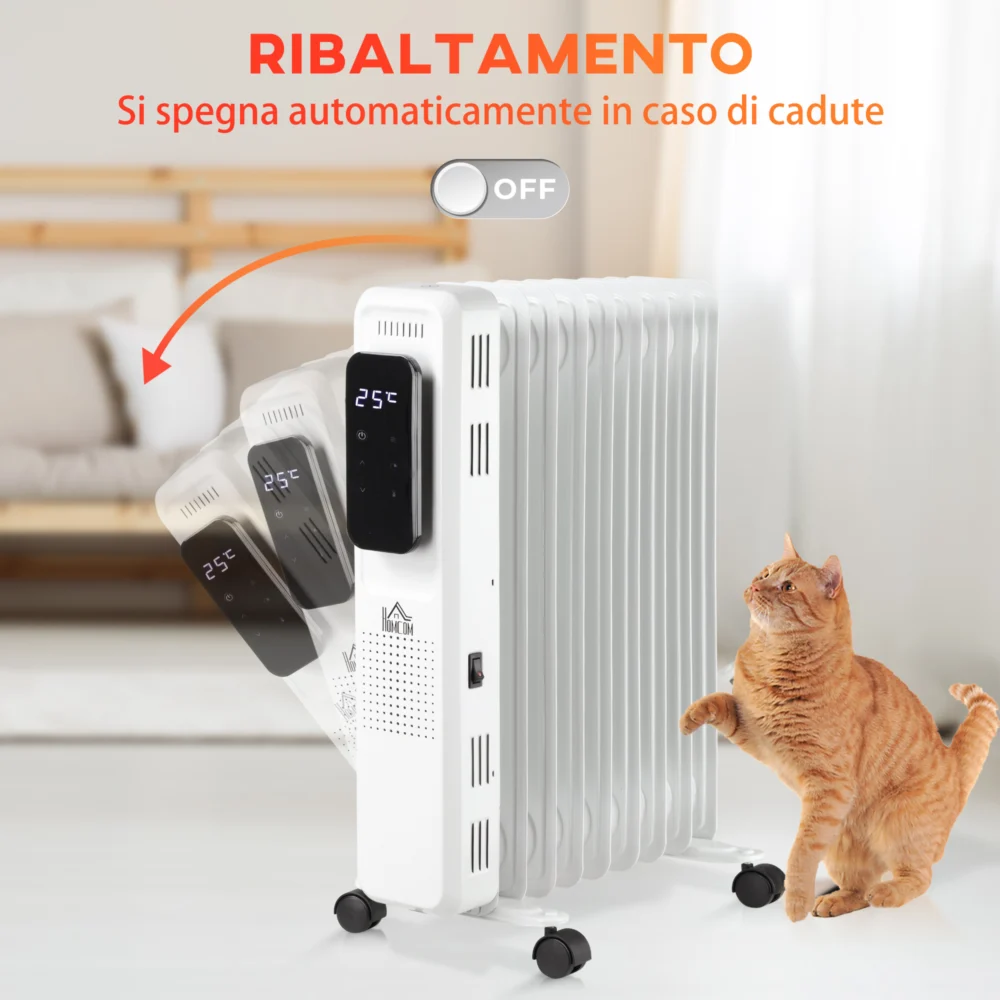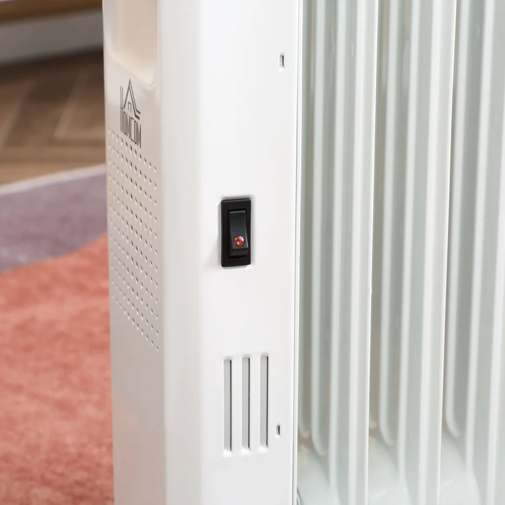 Καλοριφέρ λαδιού HOMCOM 9 Elements, Ρυθμιζόμενη θερμοκρασία, 3 επίπεδα θέρμανσης και χρονοδιακόπτης, 42,5x24x63cm – Λευκό 820-261V90