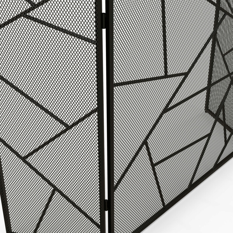 HOMCOM Προστατευτικό για Τζάκι Πτυσσόμενο με 3 Πάνελ από Ατσάλι με Γεωμετρικό Σχέδιο, 135×1.2x85cm, Μαύρο 820-403V00BK