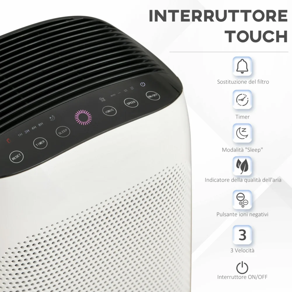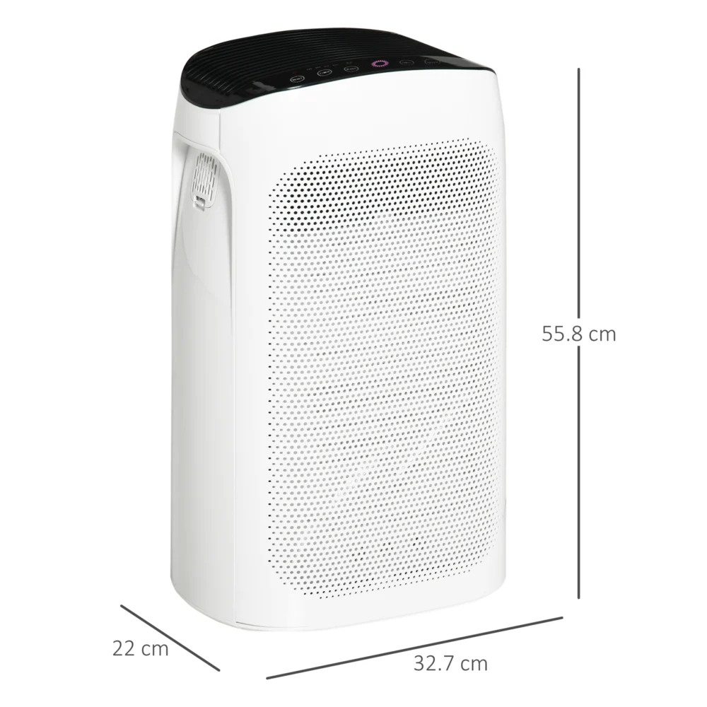 HOMCOM Air Purifier Triple Layer HEPA Filter, 3 Speeds, Modes Sleep and Timer, 32,7x22x55,8cm, Λευκό 823-019