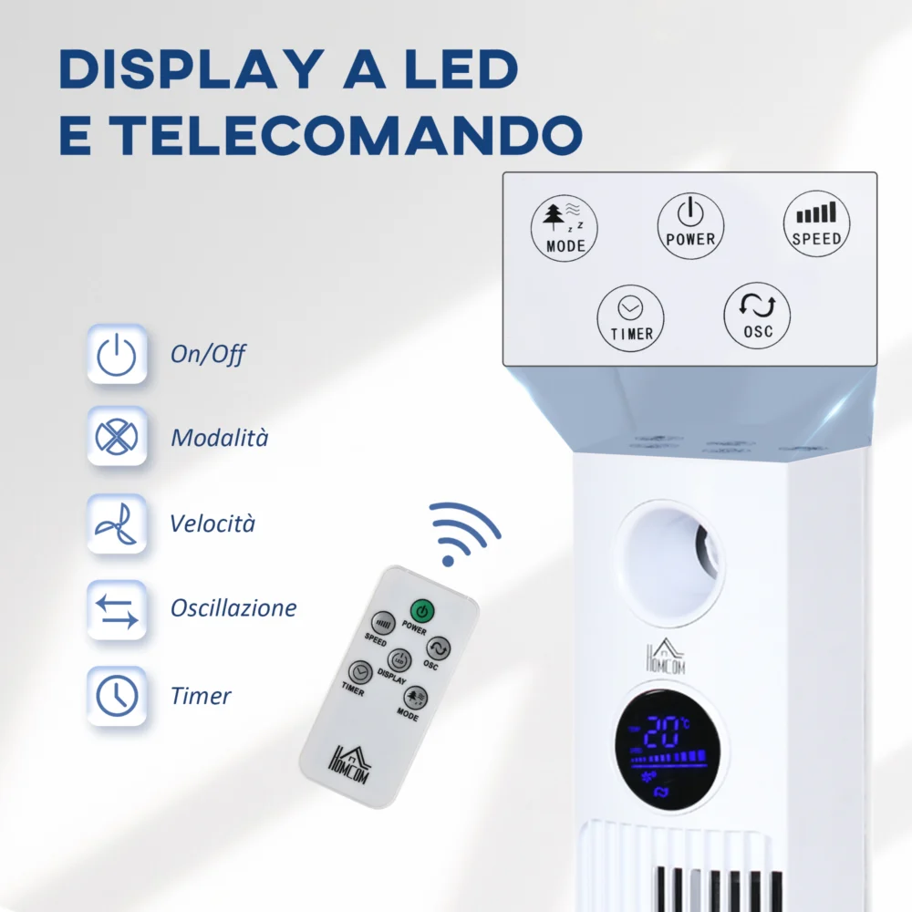 Ανεμιστήρας Tower 45W με 3 λειτουργίες και 3 ταχύτητες με χρονοδιακόπτη 12 ωρών και διαχύτη, 31,5×31,5×96 cm, Λευκό 824-050V90WT