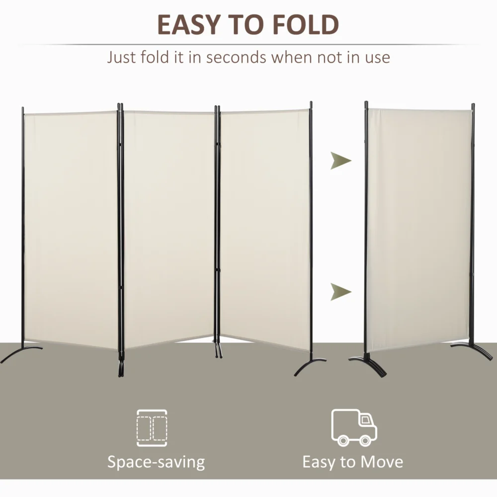HOMCOM Εσωτερική διαχωριστική σήτα με 3 πτυσσόμενα πάνελ σε μέταλλο και πολυεστέρα, 253x50x182cm, Μπεζ 830-306V01BG