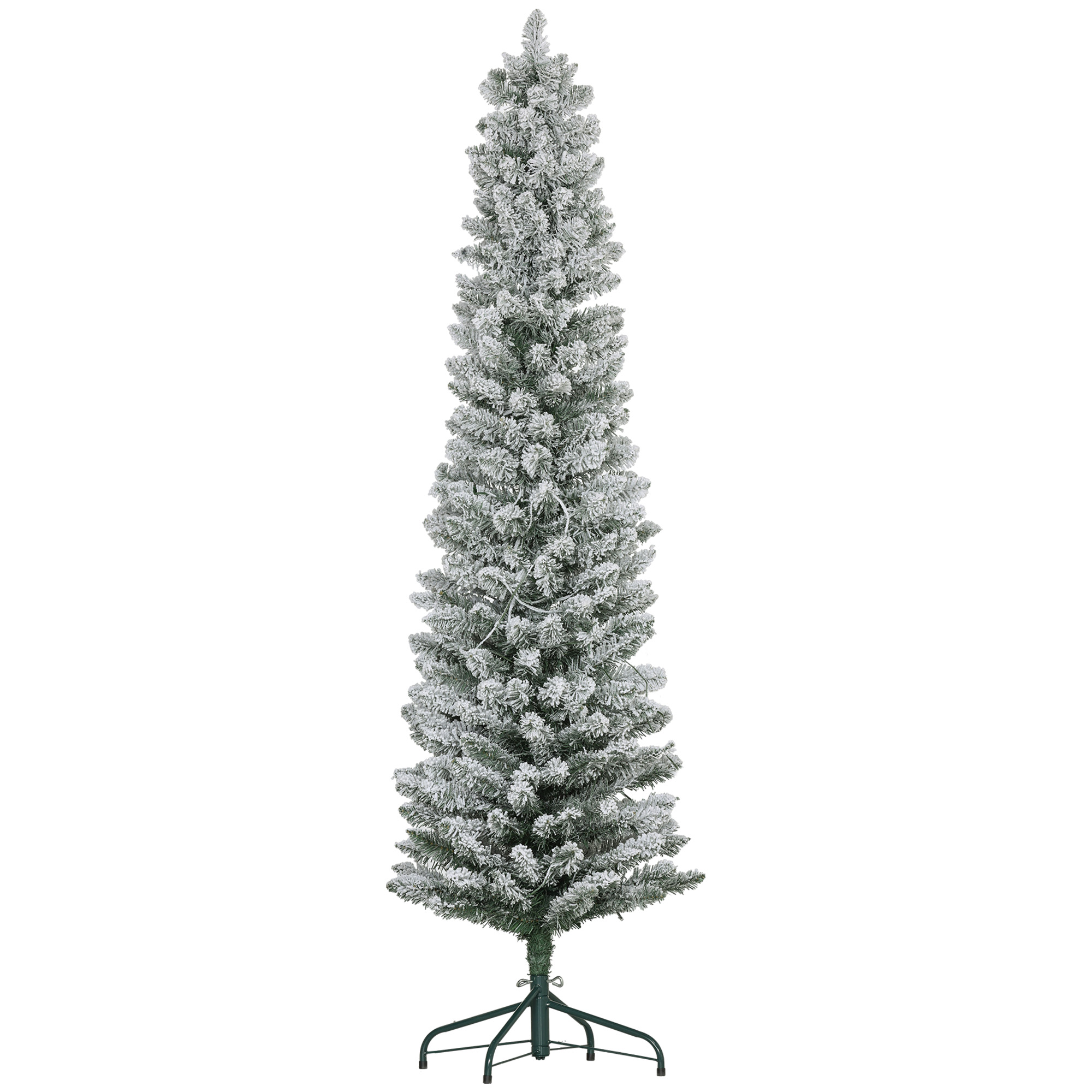 HOMCOM Χριστουγεννιάτικο Δέντρο με Χιόνι με 329 Κλαδιά και Λευκά LED Φώτα από Πλαστικό και Μέταλλο O52x180 cm Πράσινο 830-887V95