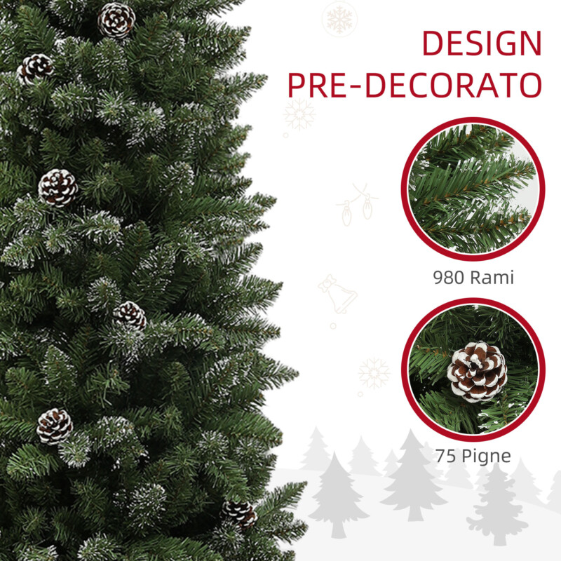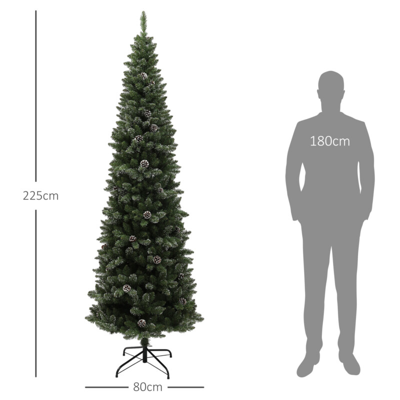HOMCOM Χριστουγεννιάτικο Δέντρο με Χιόνι Ύψους 225 εκ με 980 Κλαδιά, Κώνους και Βάση από Ατσάλι 830-916V02GN