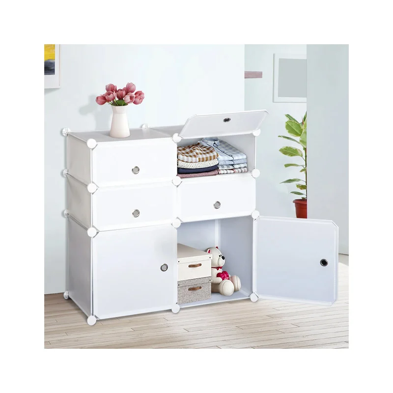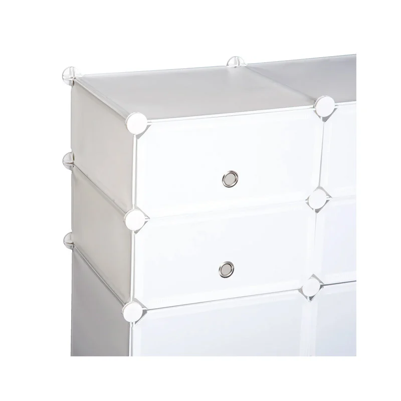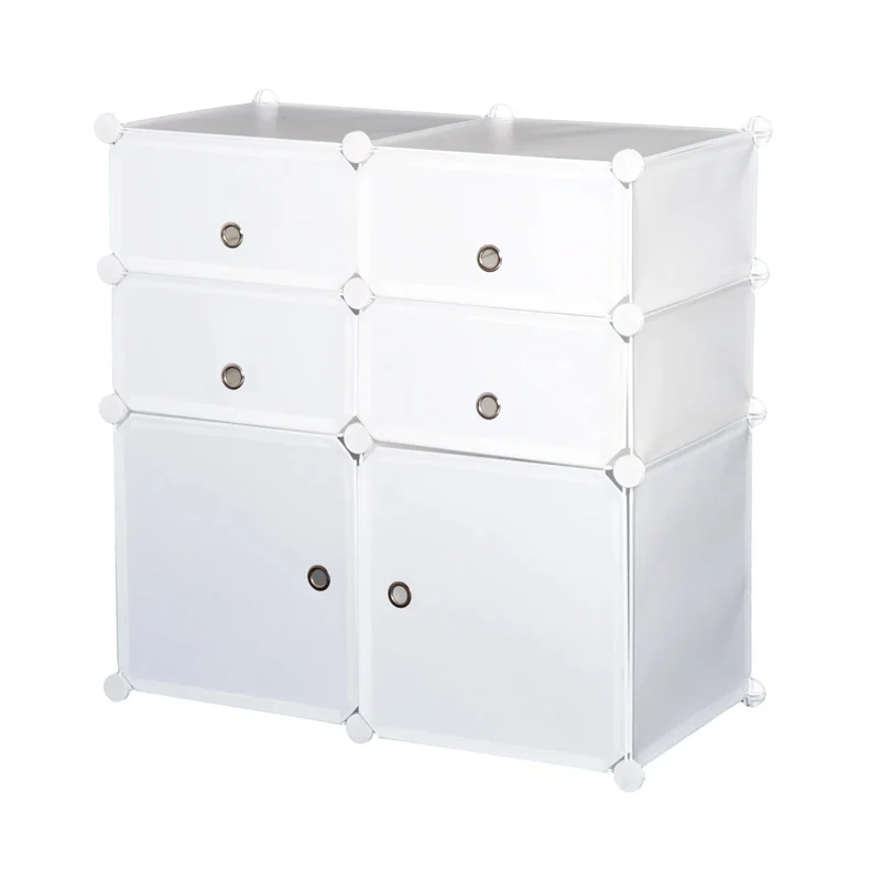 Είναι εξοπλισμένο με 6 κύβους, 2 μεγεθών με πόρτες όπου μπορείτε να αποθηκεύσετε ρούχα, βιβλία, παπούτσια παιχνίδια κ.α. Το κάλυμμα είναι ανθεκτικό και προστατεύει τα υπάρχοντα σας από τη σκόνη.