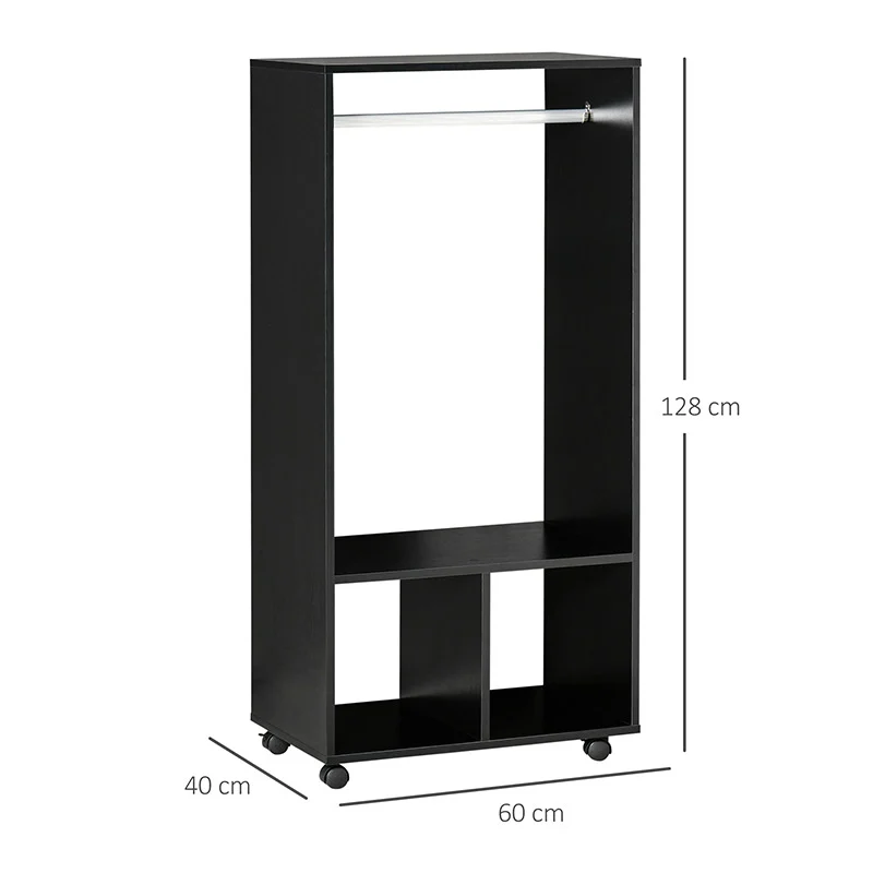 Ξύλινη Ανοιχτή Τροχήλατη Ντουλάπα 60 x 40 x 128 cm HOMCOM 831-208BK