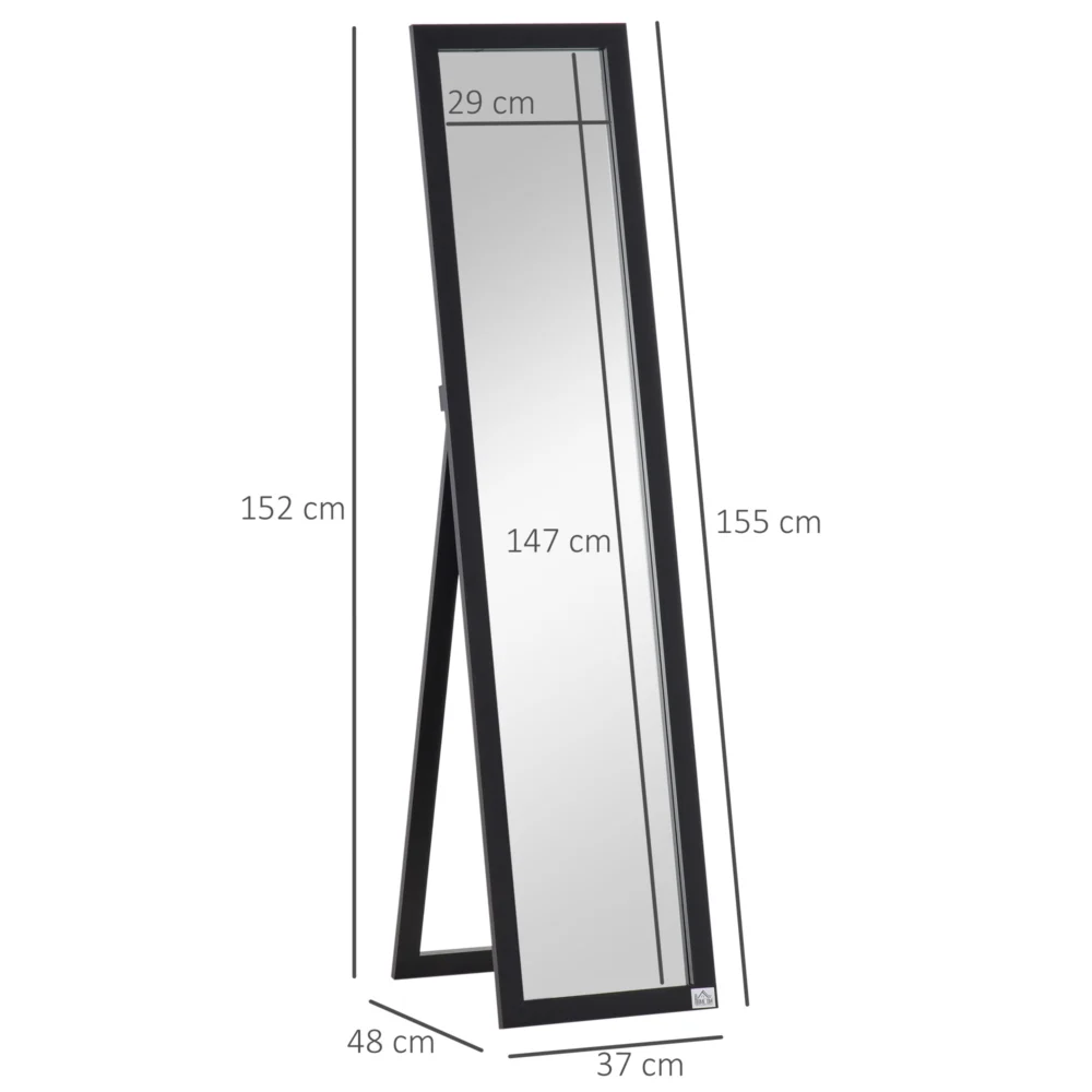 Καθρέφτης δαπέδου και τοίχου HOMCOM με πτυσσόμενη στήριξη και πλαίσιο MDF, 37x48x152cm, Μαύρο 831-389BK