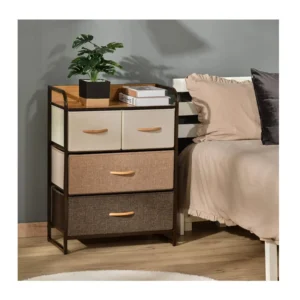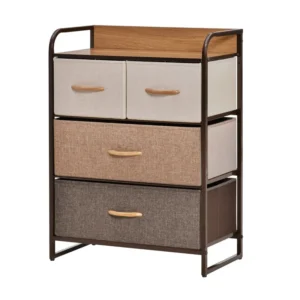 Η συρταριέρα, από την εταιρία HOMCOM, είναι ιδανική για όλους τους χώρους του σπιτιού, ως επιπλέον αποθηκευτικός χώρος. Συνδυάζει μεταλλικό σκελετό και μοριοσανίδες για μεγάλη διάρκεια ζωής. Διαθέτει 4 αφαιρούμενα & πτυσσόμενα υφασμάτινα συρτάρια και 1 ξύλινο ράφι, τα οποία προσφέρουν χώρο αποθήκευσης για άφθονα οικιακά είδη. Είναι εξοπλισμένο με ρυθμιζόμενα πόδια για σταθερότητα και προστασία στο δάπεδο και μπορεί να στερεωθεί στο τοίχο για μεγαλύτερη ασφάλεια.