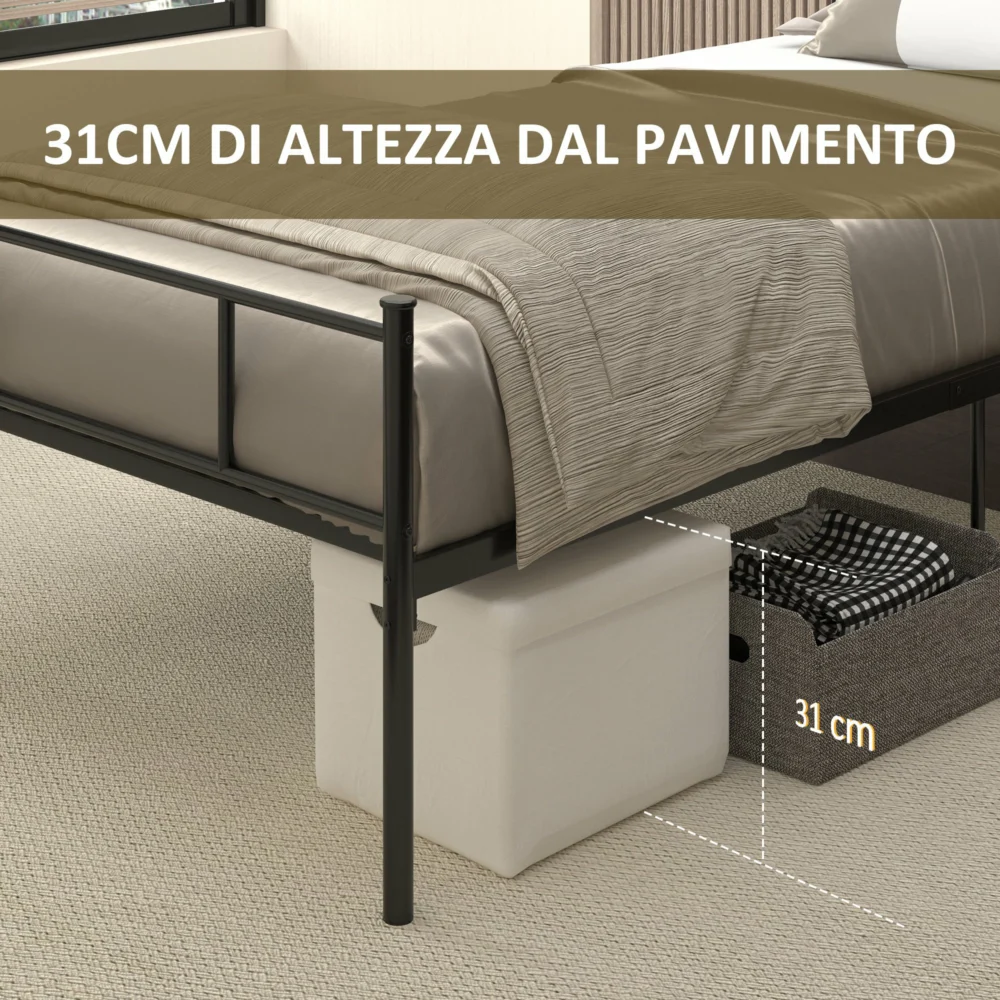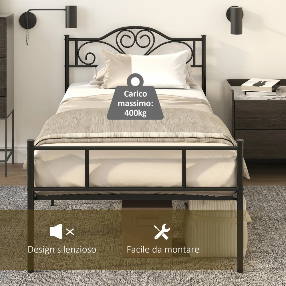HOMCOM Σκελετός κρεβατιού μονό από ατσάλι με ενσωματωμένα πηχάκια, κεφαλάρι και πόδι, 90x200cm 831-415