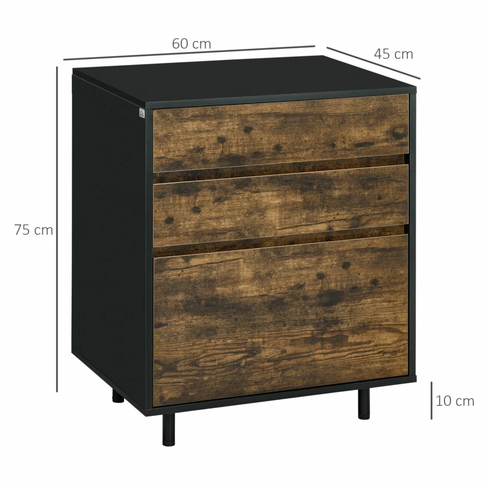 HOMCOM Συρταριέρα με 3 συρτάρια σε μοριοσανίδα σε ρουστίκ στυλ, 60x45x75cm, καφέ και μαύρο 831-652V00RB