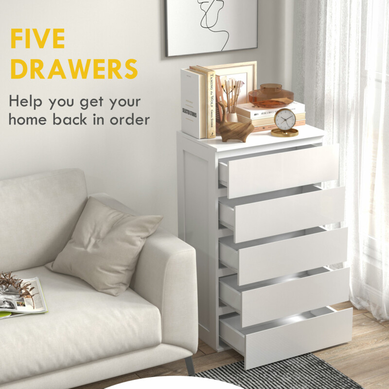 HOMCOM Συρταριέρα με 5 ξύλινα συρτάρια με αυλακωτά χερούλια, 60x38x100cm, Λευκό 831-690V81WT