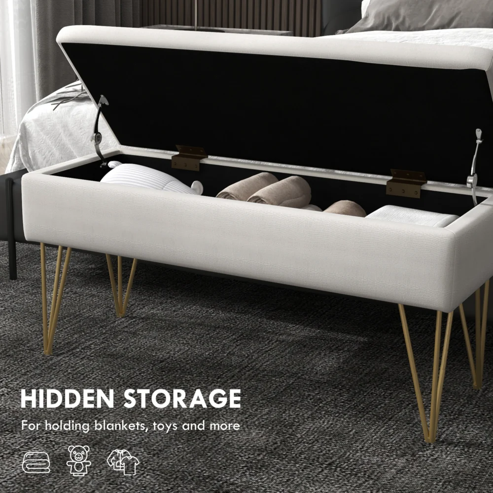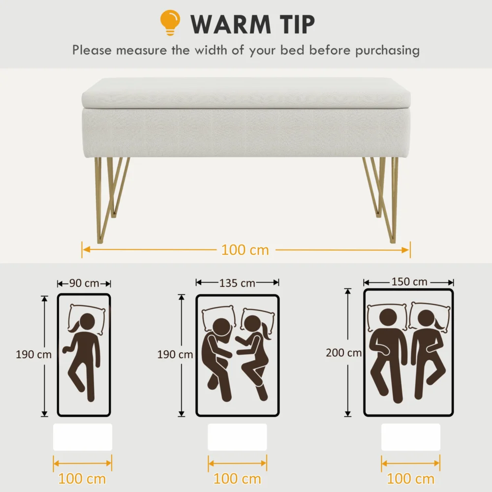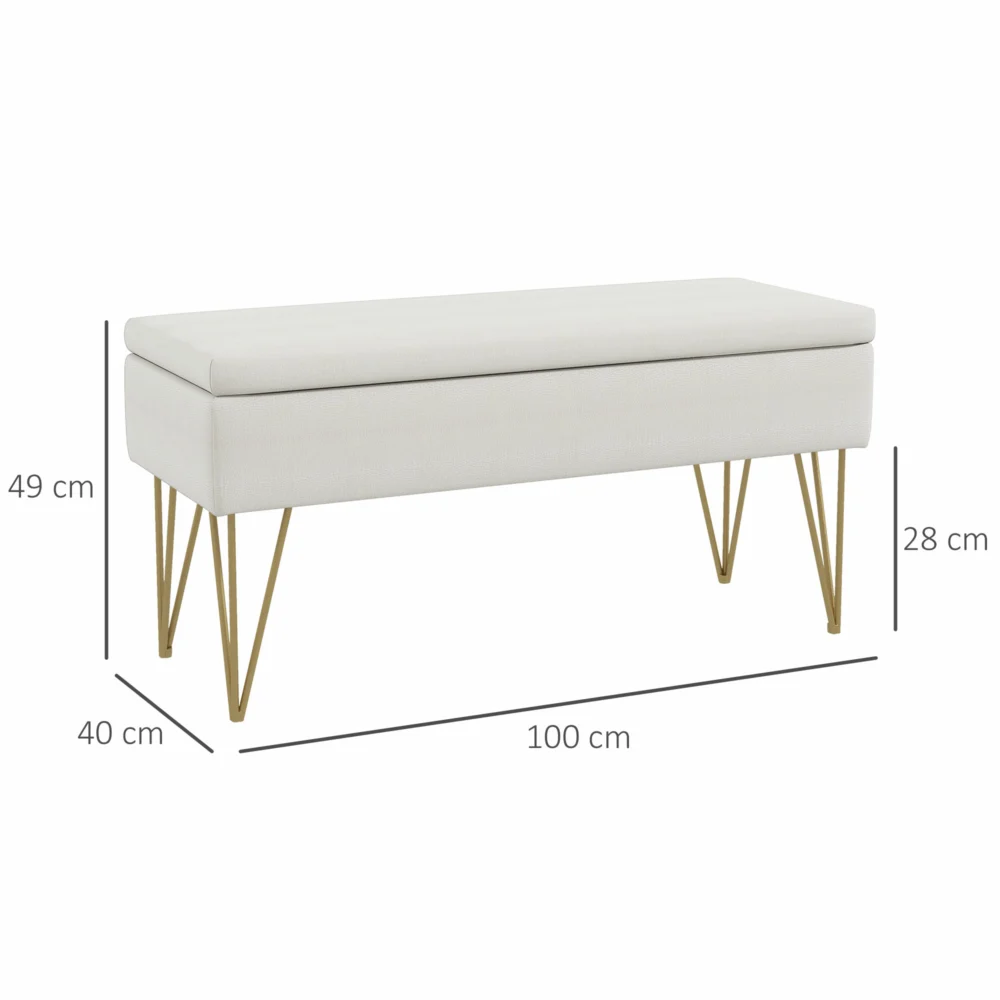 HOMCOM Κρεβάτι κάτω πάγκος με υφασμάτινο χώρο αποθήκευσης και ατσάλινα πόδια, 100x40x49cm, κρέμα 831-735V00CW