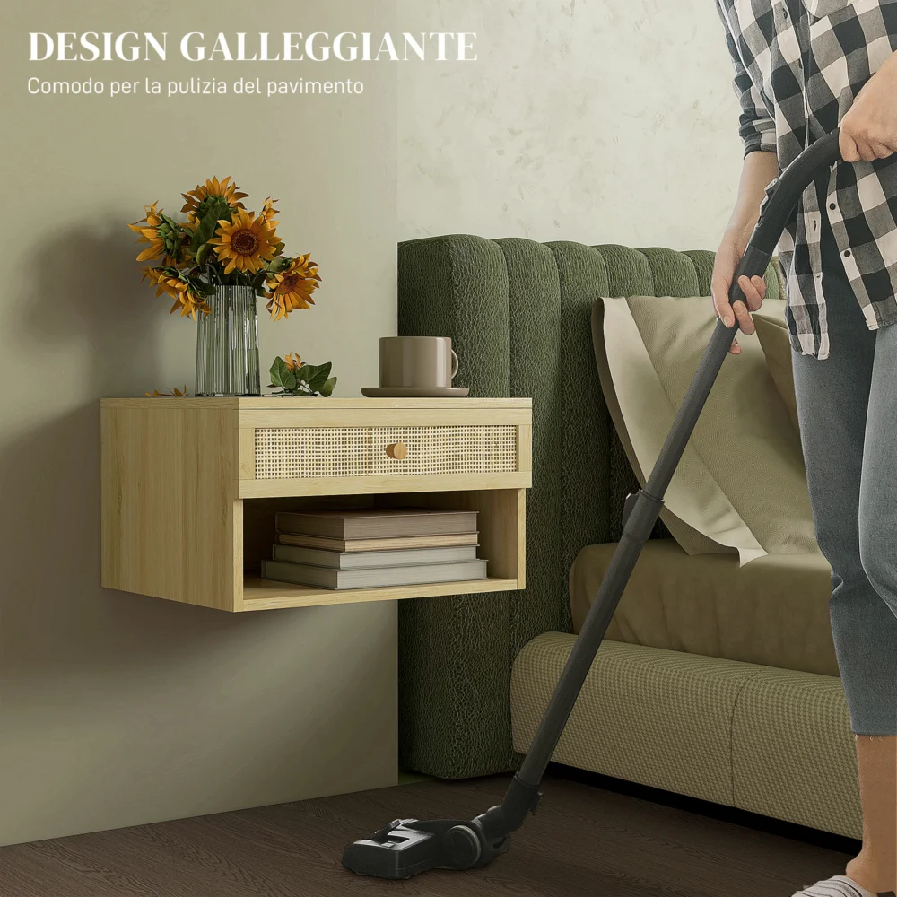HOMCOM Σετ 2 κομοδίνα με συρτάρι και ανοιχτά ράφια σε σκανδιναβικό στυλ, σε μοριοσανίδα και μπαστούνι, 40x34x23 cm 831-770V80ND