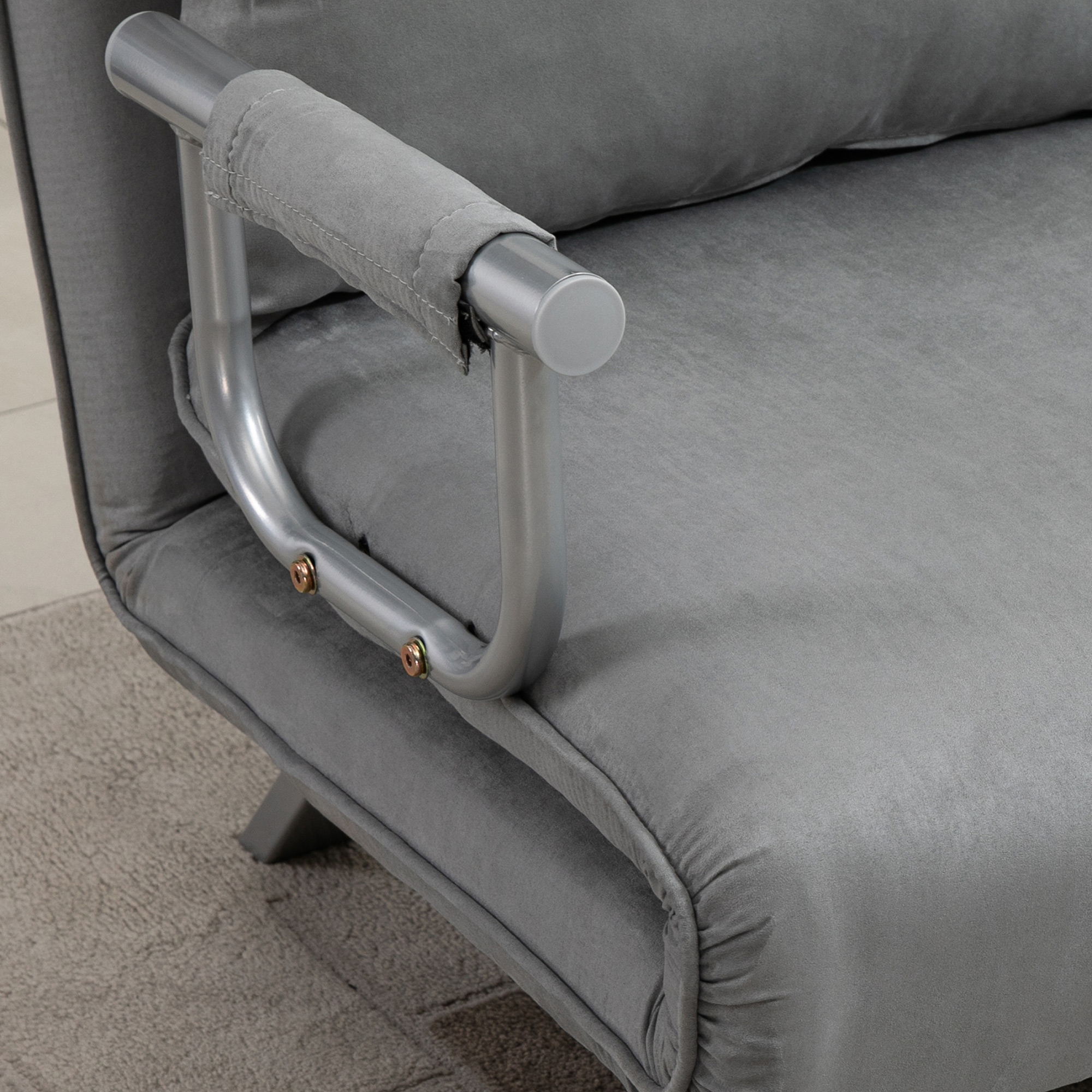 Αυτός ο καναπές-κρεβάτι HOMCOM ταιριάζει απόλυτα με τη διακόσμηση του υπνοδωματίου ή του καθιστικού. Η πλάτη με πέντε θέσεις προσφέρει διάφορα επίπεδα ρύθμισης για να σας βοηθήσει να βρείτε την τέλεια θέση χαλάρωσης. Ο ανθεκτικός σκελετός από βαμμένο με πούδρα ατσάλι αυτού του καναπέ-κρεβατιού μονής θέσης δημιουργεί μια σταθερή και ανθεκτική βάση, ενώ η επένδυση από σουέτ ύφασμα σε μεσαίας πυκνότητας αφρό προσθέτει μια πινελιά κομψότητας στην αισθητική του προϊόντος.