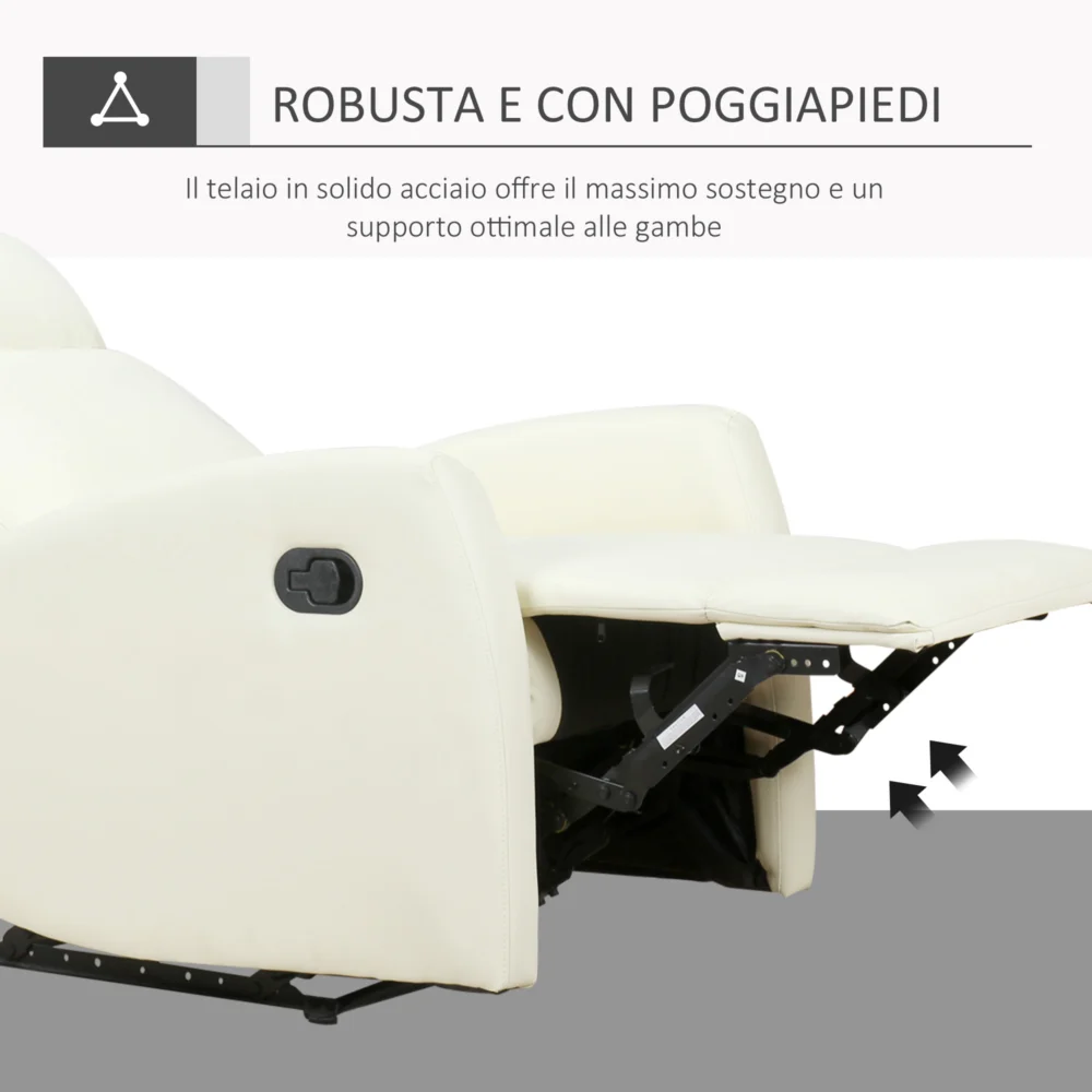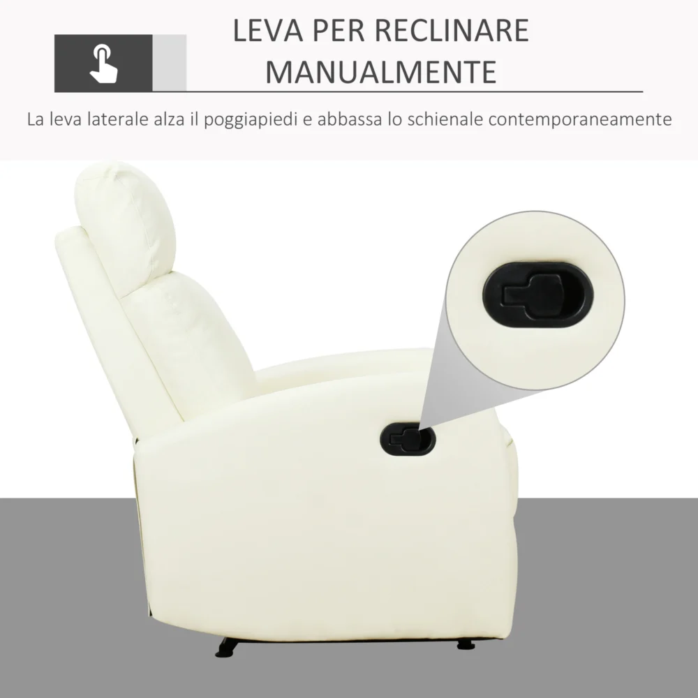 Homcom Ανακλινόμενη Εργονομική Πολυθρόνα Relax 65 από οικολογικό δέρμα ενενήντα δύο ? 100 εκ. Κρέμα 833-384WT