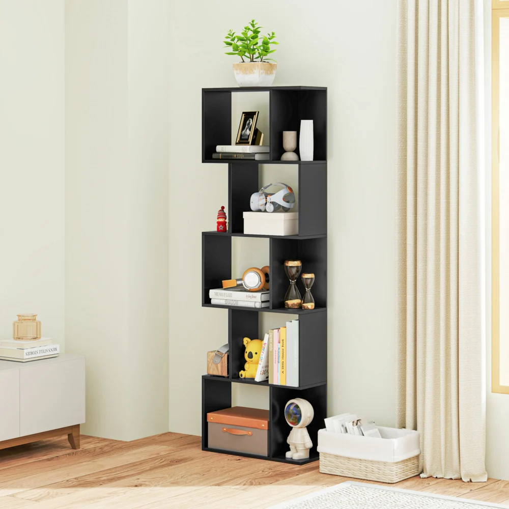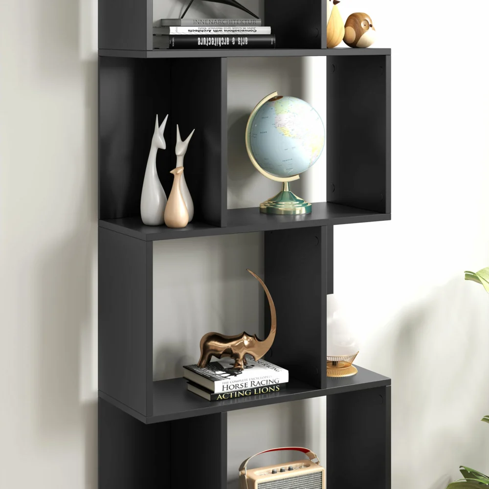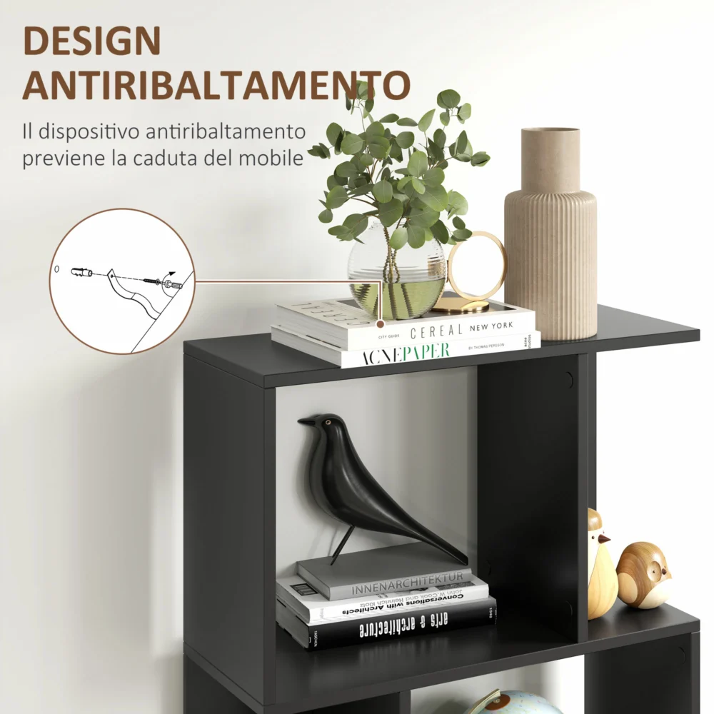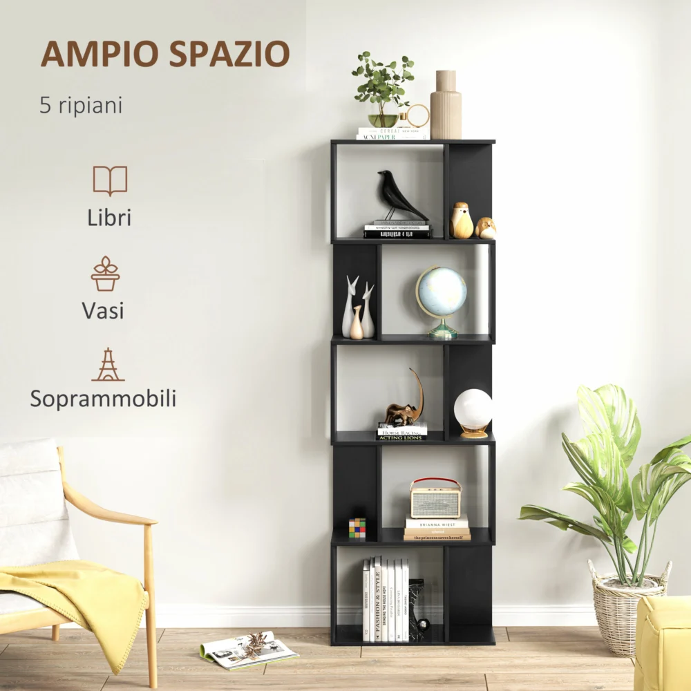 HOMCOM Κινητή Βιβλιοθήκη από Ξύλο με 5 Ράφια Μοντέρνου Σχεδιασμού από Ξύλο, 60x24x184.5 εκ., Μαύρο 833-450V00BK