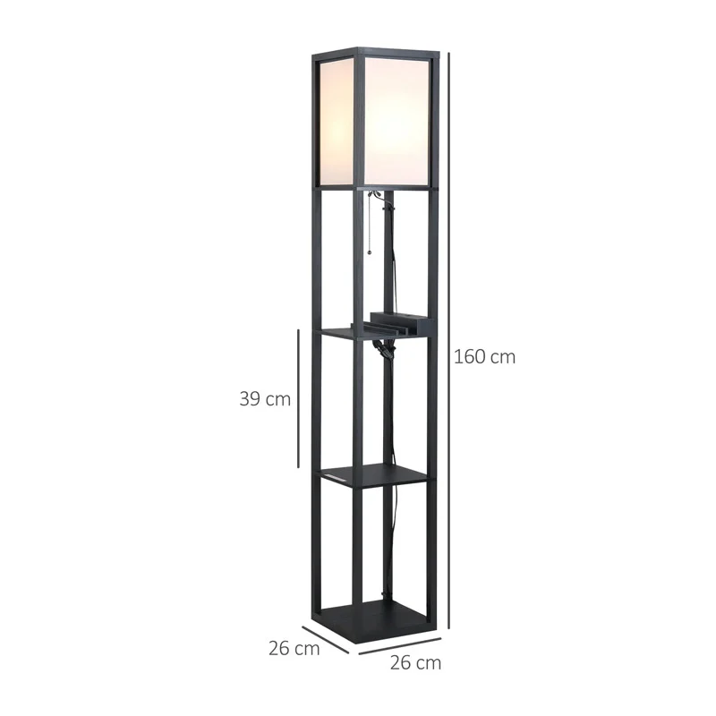 Το φωτιστικό δαπέδου, από την εταιρία HOMCOM, είναι εξαιρετικά λειτουργικό και είναι ιδανικό για οποιοδήποτε περιβάλλον, από το σαλόνι έως το υπνοδωμάτιο. Έχετε 3 βολικά ράφια που μπορείτε να χρησιμοποιήσετε για να αποθηκεύσετε κορνίζες, γλάστρες και βιβλία. Το επάνω ράφι είναι εξοπλισμένο με 2 υποδοχές USB για υποστήριξη κινητού τηλεφώνου και tablet.