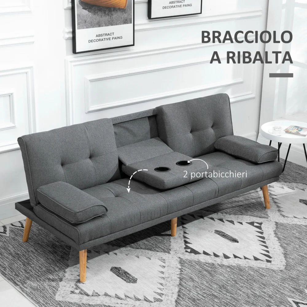 Ανακλινόμενος καναπές-κρεβάτι 3 θέσεων HOMCOM με 2 αποσπώμενα μπράτσα, από ύφασμα λινό και ξύλο λεύκας, 181x77x72 cm 833-663CG