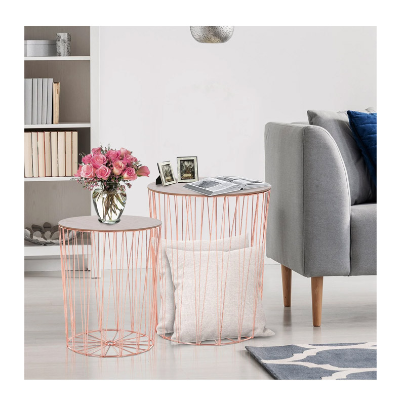 Σετ Βοηθητικά Μεταλλικά Τραπέζια 40.7 x 49.5 cm Χρώματος Ροζ – Χρυσό HOMCOM 833-718V01ND