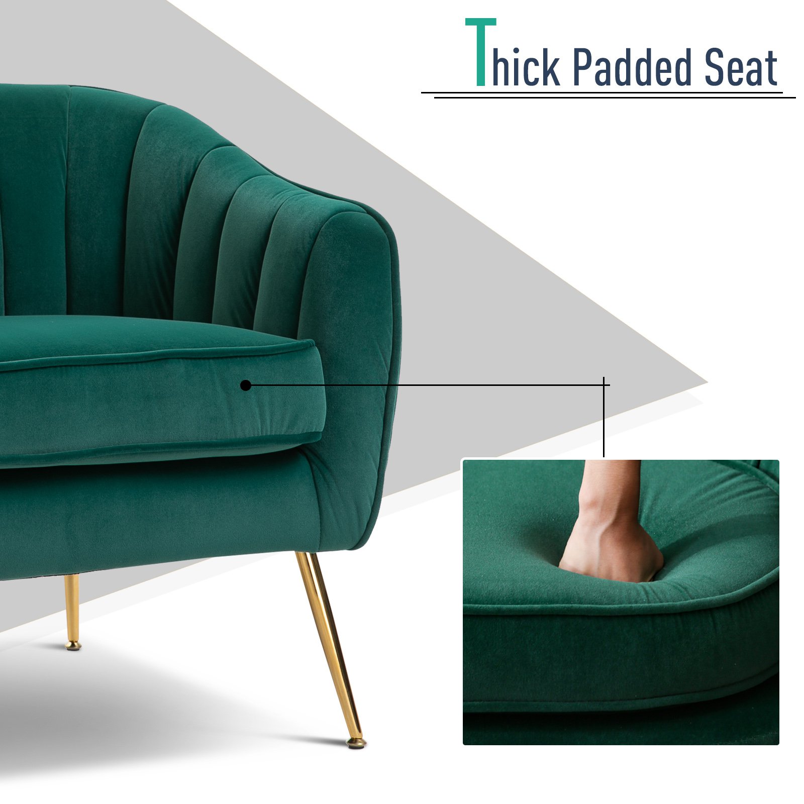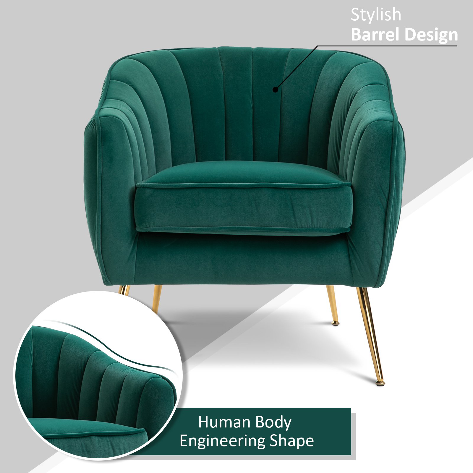 Πολυθρόνα Homcom σε πράσινο βελούδο με χρυσά μεταλλικά πόδια 833-725GN