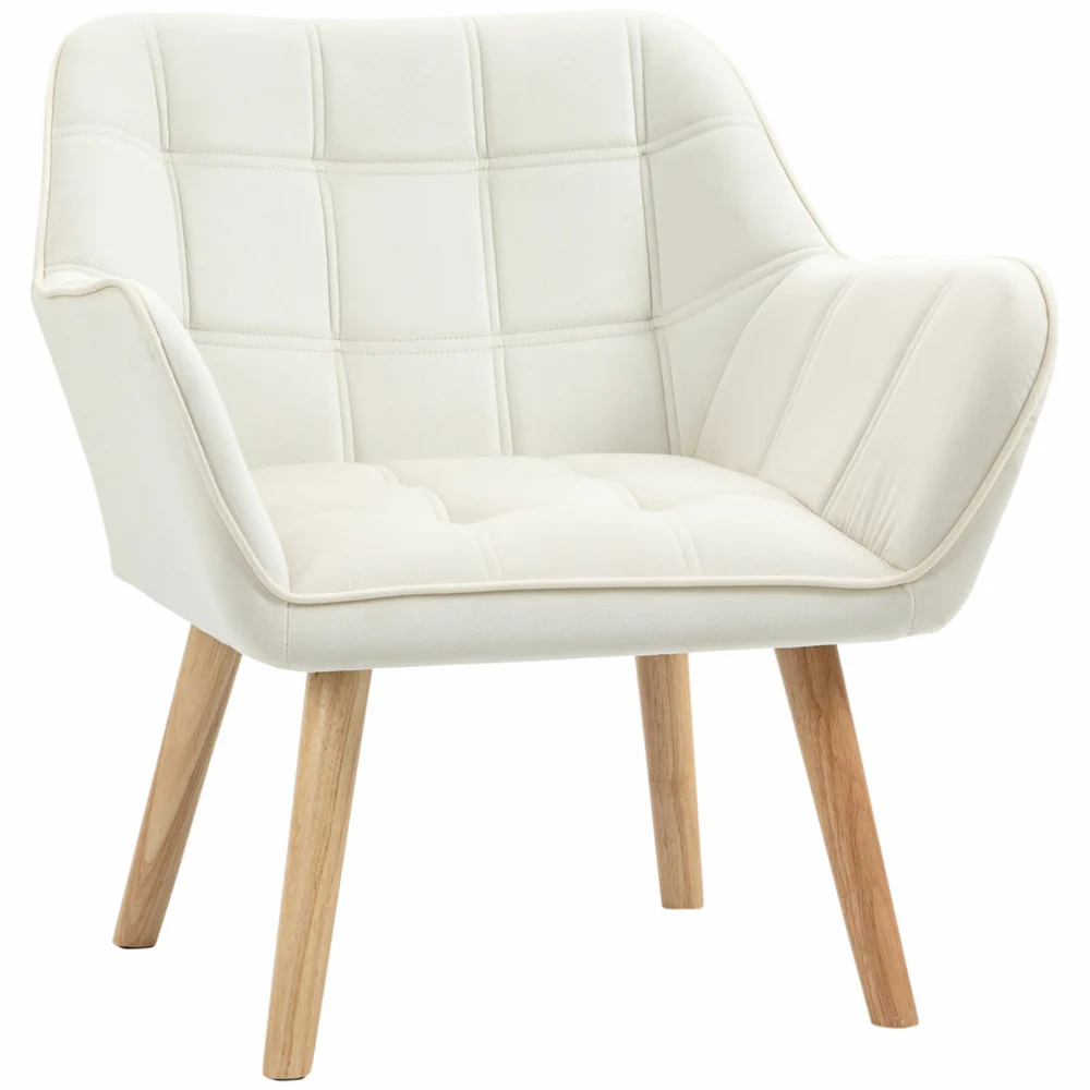 Πολυθρόνα Scandinavian Design HOMCOM σε Ξύλο και Κρεμ βελούδο εφέ, για σαλόνι ή γραφείο, 68,5x61x72,5 cm 833-799V00CW