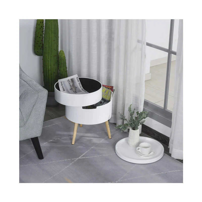 Στρογγυλό Βοηθητικό Ξύλινο Τραπεζάκι Με Περιστρεφόμενο Άνοιγμα και Αφαιρούμενο Δίσκο 38 x 48.3 cm HOMCOM 833-874