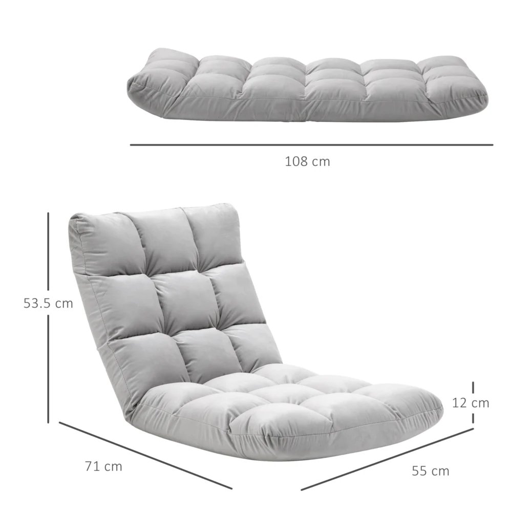 Υφασμάτινη Πολυθρόνα Δαπέδου με Ανακλινόμενη Πλάτη 71 x 55 x 53.5 cm HOMCOM 833-908GY
