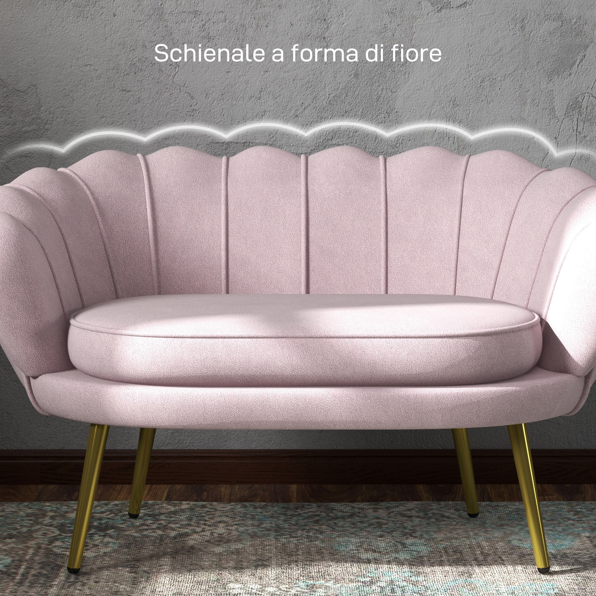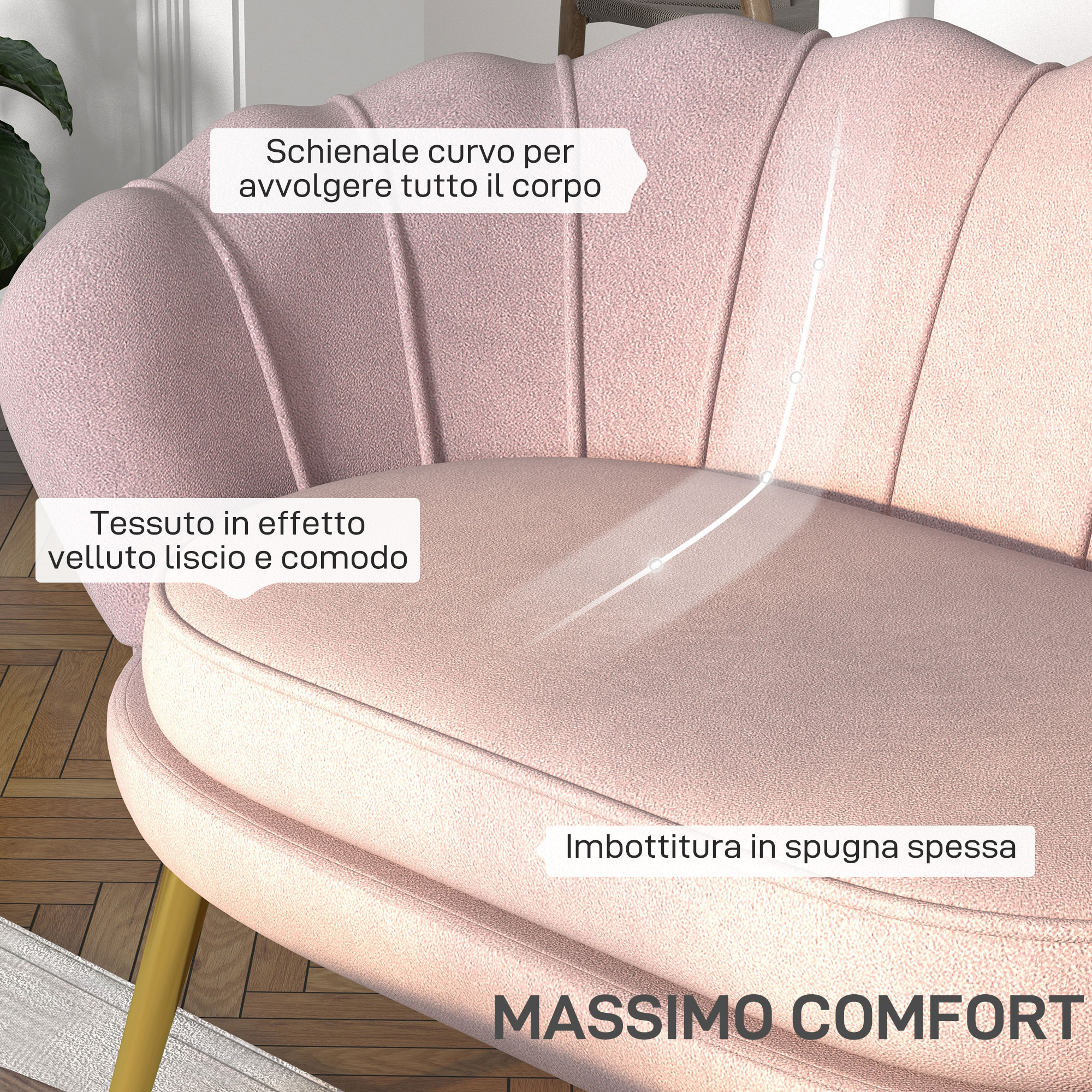 HOMCOM Διθέσιος καναπές σε στυλ Industrial Chic από ύφασμα με εφέ βελούδου και μέταλλο, 130x77x77 εκ., Ροζ 833-957V00PK