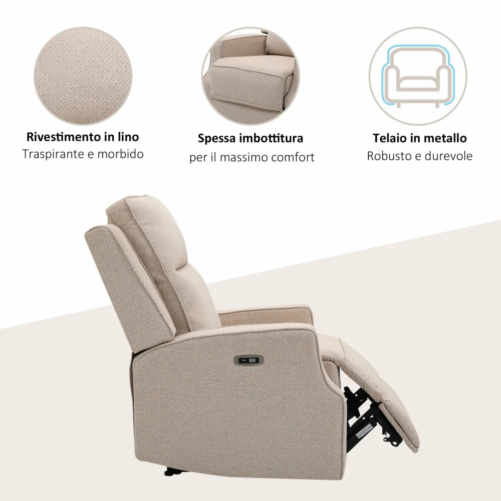 Ανακλινόμενη ηλεκτρική πολυθρόνα χαλάρωσης HOMCOM με μπεζ υποδοχή φόρτισης USB 833-987V90