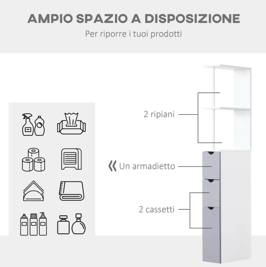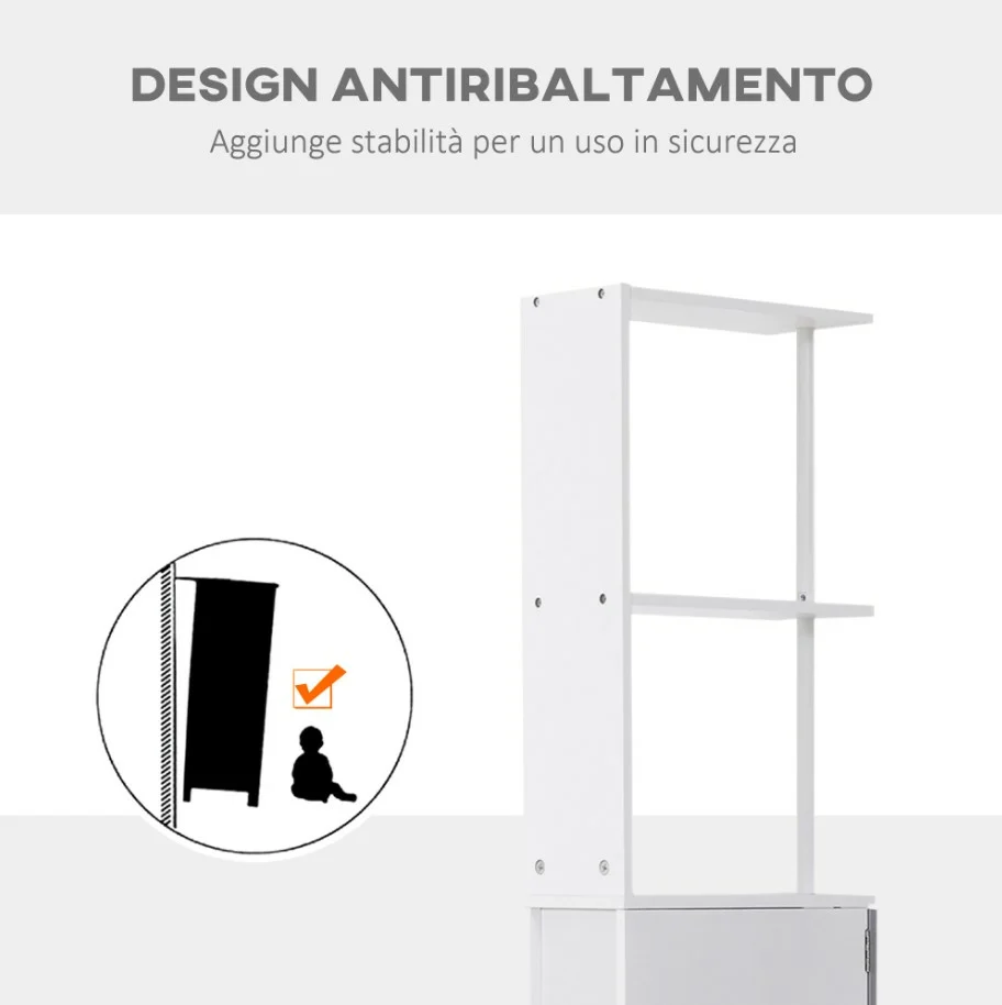 Εταζέρα Μπάνιου με 3 Ντουλάπια και 2 Ράφια 15 x 33 x 136 cm HOMCOM Λευκή 834-114