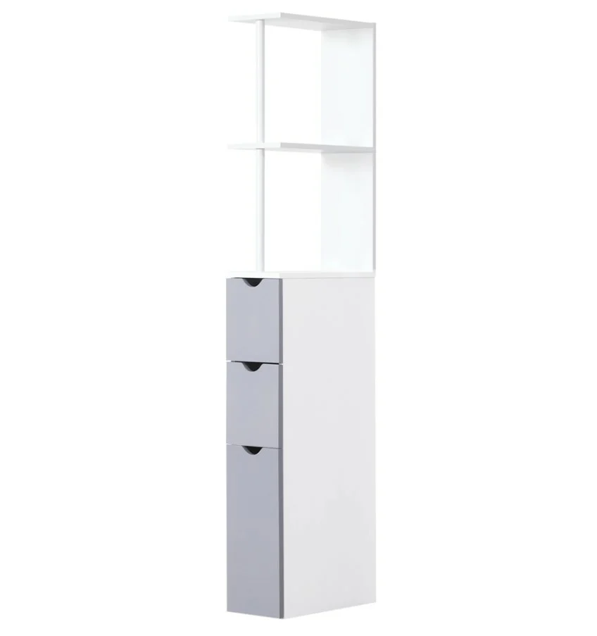 Η εταζέρα μπάνιου είναι κατασκευασμένη από ξύλο MDF. Διαθέτει 3 ευρύχωρα ντουλάπια με πόρτες σε γκρι χρώμα για την αποθήκευση διάφορων αντικειμένων, καθώς και 2 ράφια.