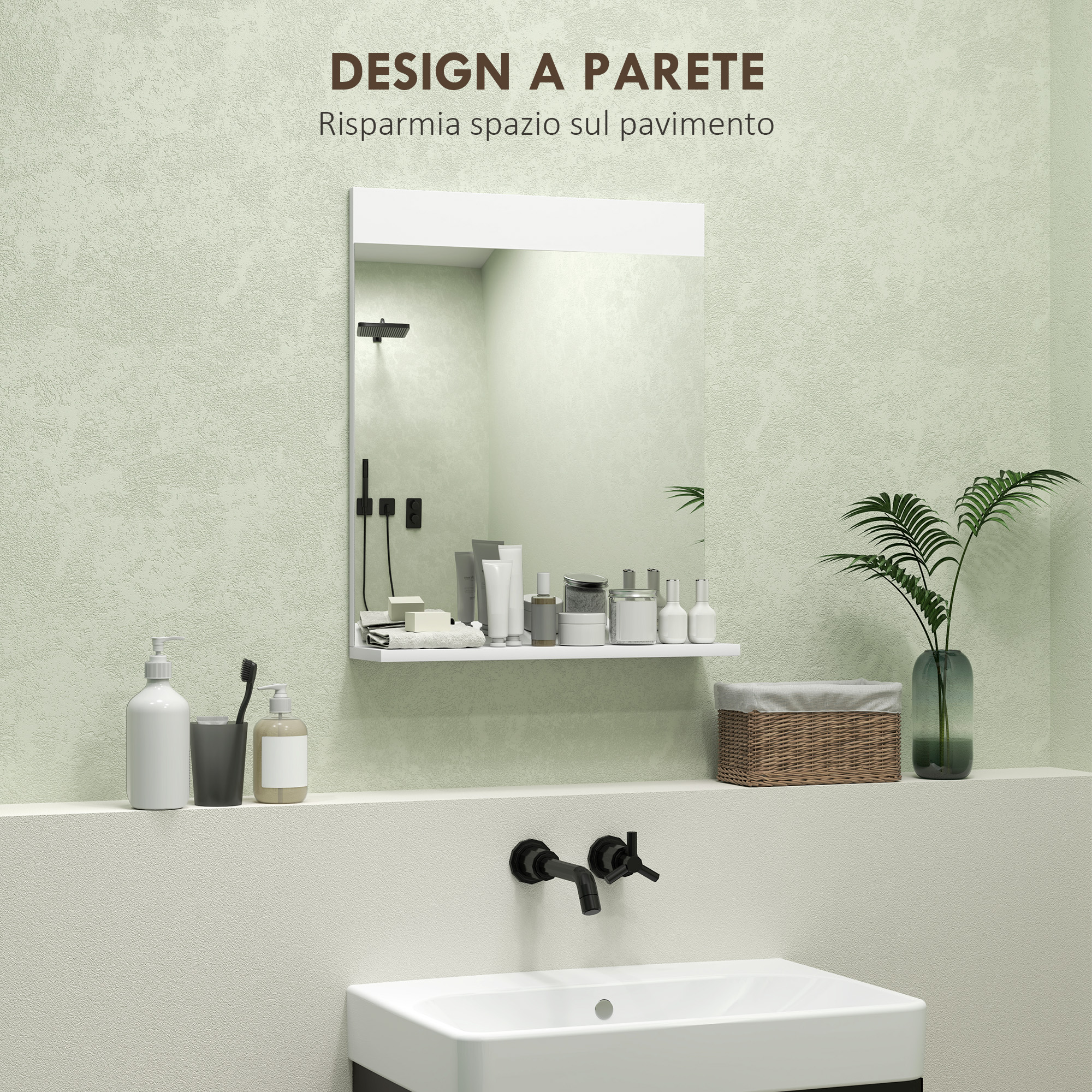 Ο καθρέφτης τοίχου HOMCOM είναι ιδανικός για να αντανακλά την εικόνα σας ή να μακιγιάρεστε με ακρίβεια στο μπάνιο του σπιτιού σας, ενώ ένα ενσωματωμένο ράφι βελτιστοποιεί το χώρο και οργανώνει τα αξεσουάρ σας για να εξαλείψει την ακαταστασία. Ο κομψός σχεδιασμός και το γυαλιστερό φινίρισμα επιτρέπουν σε αυτόν τον μοντέρνο καθρέφτη να διακοσμήσει κατάλληλα το μπάνιο, το υπνοδωμάτιο, τον διάδρομο ή το σαλόνι χάρη στο μείγμα πρακτικότητας και στυλ.