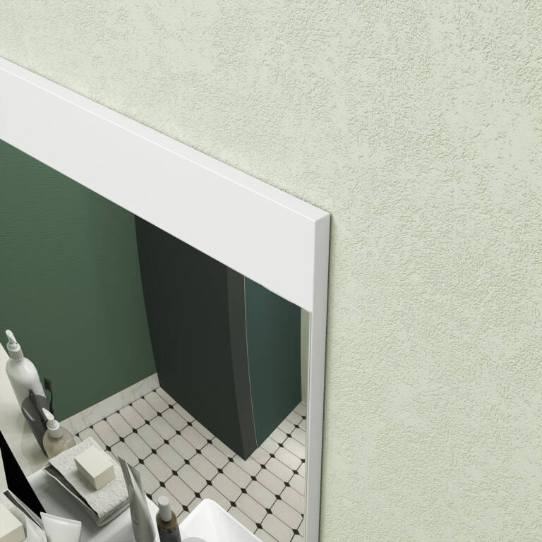 • Καθρέφτης μπάνιου κατασκευασμένος από πάνελ MDF υψηλής γυαλάδας και ανθεκτικό για την προστασία του εσωτερικού γυαλιού.