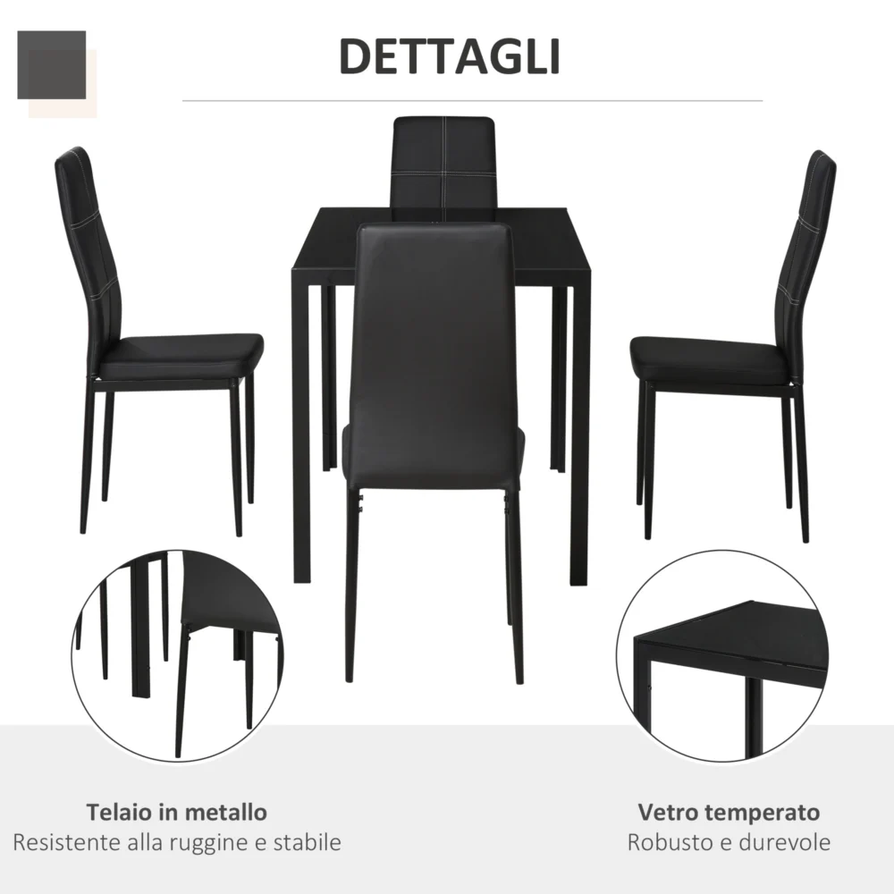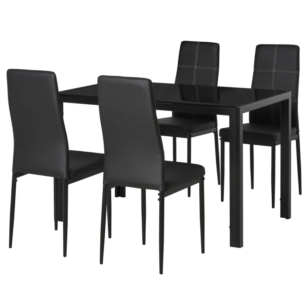 Σετ Τραπέζι Homcom από μέταλλο και γυαλί με 4 επενδυμένες καρέκλες για κουζίνα ή τραπεζαρία μαύρο 835-255BK